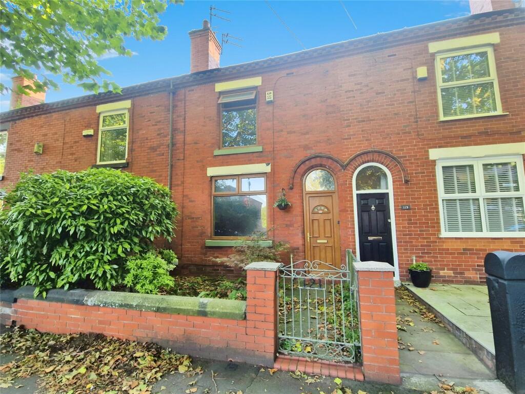 The property is a terraced house located on Walkden Road in Worsley, Manchester.