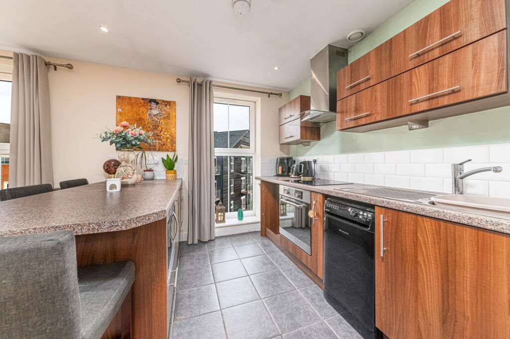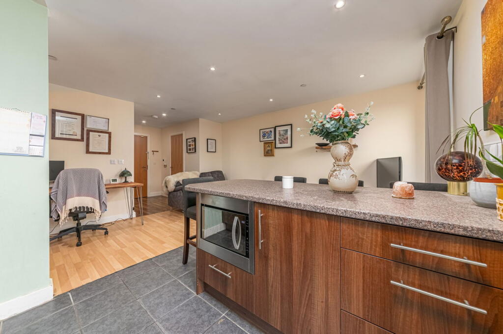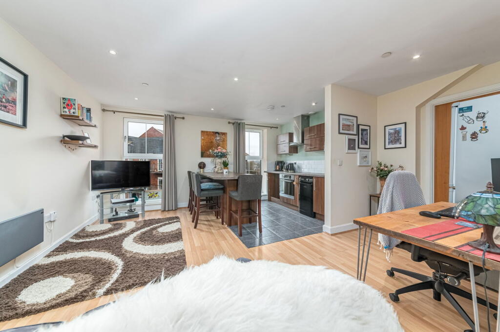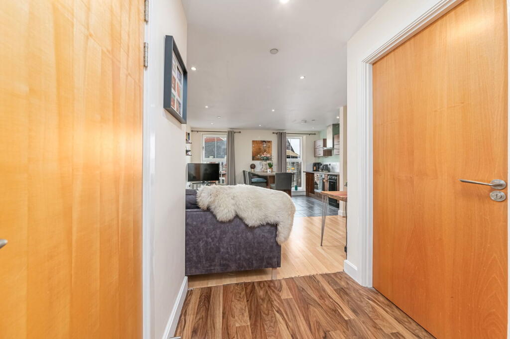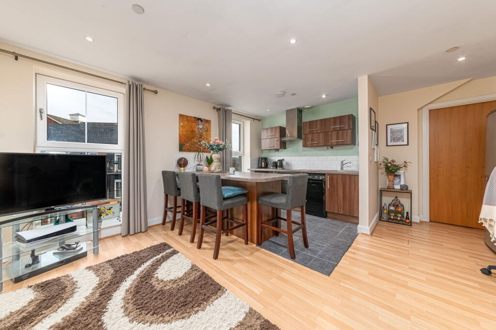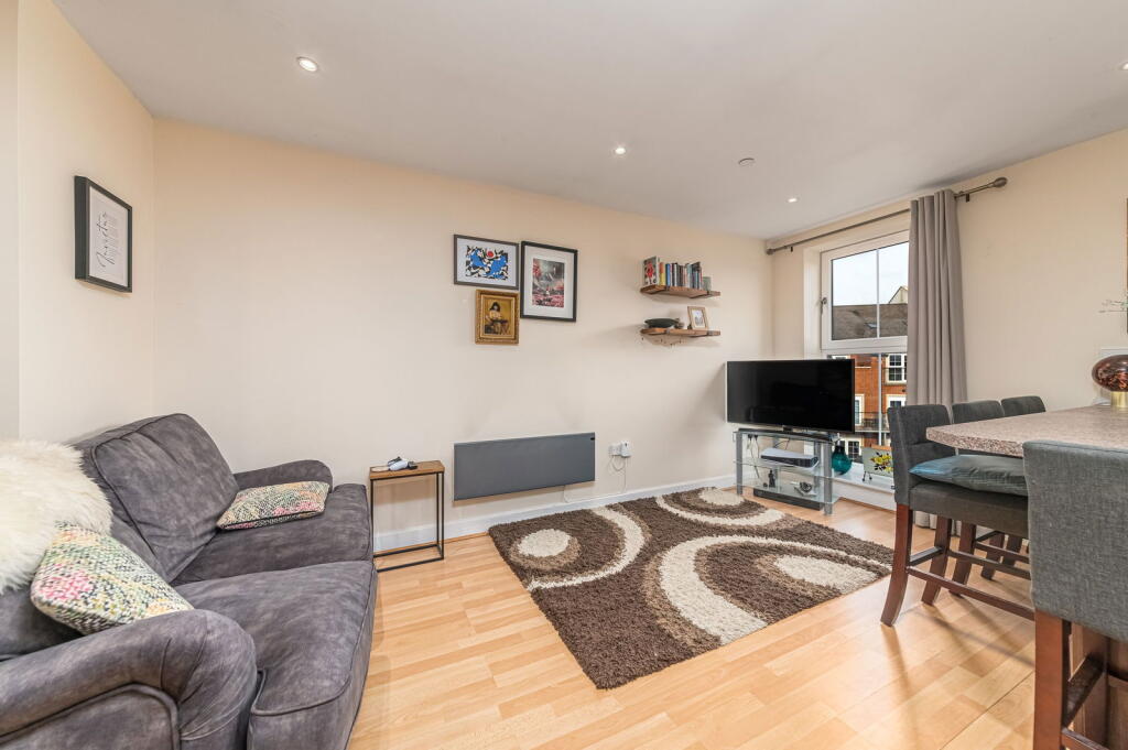 The property is a well-maintained 1-bedroom flat in a modern apartment complex. It benefits from a convenient location near the train station and several schools. The interior is modern and clean, and the property appears to be in excellent condition. While the lack of a private garden and smaller size compared to average properties in the area are factors to consider, the list price is significantly lower than the average house price, suggesting it could represent good value for money.