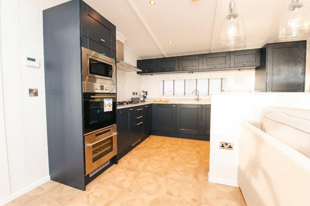This Prestige Hampton Lodge enjoys unrestricted views from the comfort of the sofa, in the magnificent open plan central kitchen, dining family room thanks to its 6 panel bifold doors leading out to the decking. For those warmer days enjoy al fresco eating and entertaining on the 50 foot long deck.