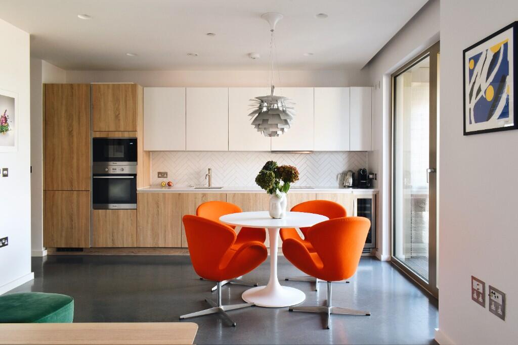 This 5th-floor corner flat in award-winning Monohaus, London Fields, blends creativity with comfort. With soaring ceilings, year-round daylight and a large heated balcony, it features built-in Sonos, wine fridge, concierge, cafés, fitness facilities and Michelin-starred dining.