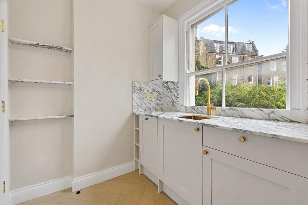 Available immediately - A fully renovated, exclusive raised ground floor flat on St. Marks Road with impressive 3.4-metre high ceilings, exceptional natural light throughout and a dedicated working space.