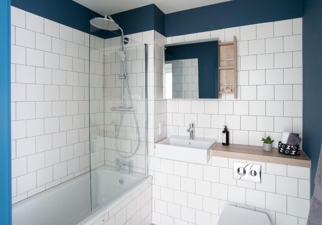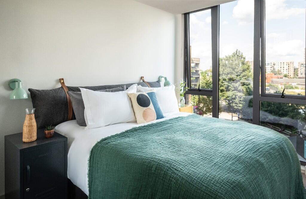 This stunning high ceiling two bedroom apartment consisting 719 sq ft of living space, boasts floor to ceiling windows throughout, two stylish tiled bathrooms, and an open-plan fully fitted kitchen including Montpellier appliances and an induction hob.