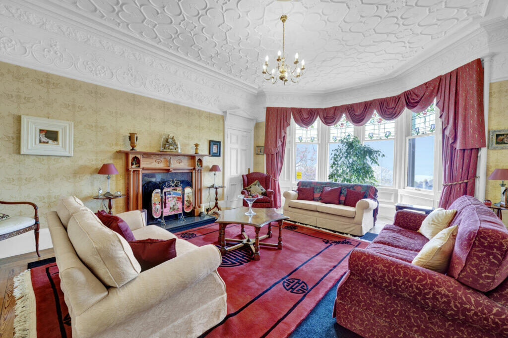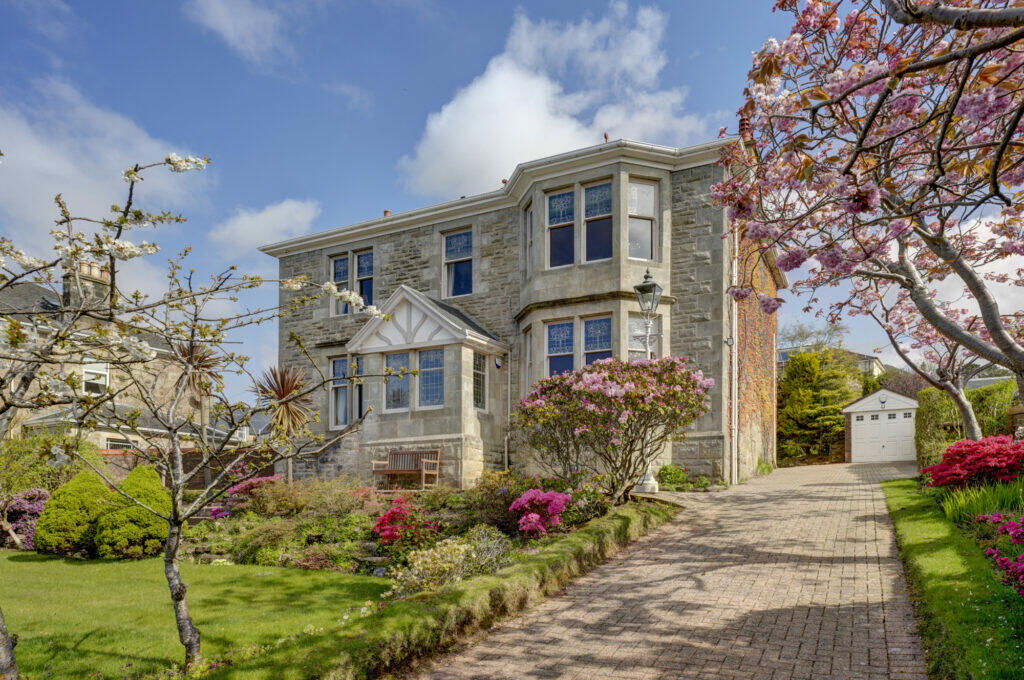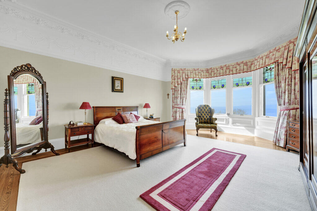 This property is a substantial detached villa located in West Kilbride, North Ayrshire, Scotland. The listing highlights its location in a highly sought-after area of the town, offering excellent views over the Firth of Clyde to the Isle of Arran. The house itself appears to be a well-maintained period property showcasing period features, including extensive stained glass windows and decorative interior detailing. While the images reveal that the home is not newly renovated, it presents as well-kept and comfortable. The kitchen and bathrooms appear to be updated, although not necessarily modern. The property boasts a significant garden with multiple patio areas and a lawned space, adding substantial appeal to buyers looking for outdoor space. The lack of precise information regarding the property’s square footage and plot size hampers a complete assessment of its value. However, comparing the £690,000 list price to the price of other houses in the area, particularly other houses located on Overton Drive, suggests that the price is appropriate, given the location and features. The availability of a nearby train station adds to the property’s convenience for commuters, although more detailed information on the local amenities (including schools) is not available, limiting a fully comprehensive assessment. Potential buyers should conduct thorough due diligence to confirm all the details and satisfy their specific requirements and preferences. The property should appeal to those seeking a substantial family home with character and a prime coastal location.