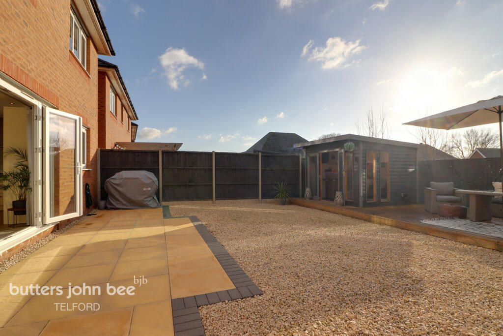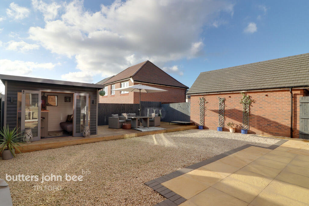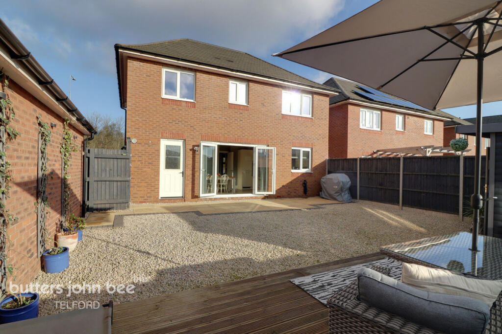 This four-bedroom, one-bathroom detached house in Sampson Holloway Mews, Priorslee, Telford, presents as a well-maintained and attractive family home. The property features a modern interior with a contemporary design, showcasing a well-equipped kitchen, spacious living areas, and tastefully decorated bedrooms. The inclusion of a substantial garden with patio, decking, and a dedicated garden bar significantly enhances the property’s appeal. The location in Priorslee offers proximity to well-regarded schools, making it an attractive option for families. While precise details on local amenities are absent, the overall area is generally considered desirable within Telford. The list price of £400,000 appears to be in line with the local market for comparable properties, although a more precise comparison is hampered by a lack of detailed square footage information for nearby listings. Overall, the property offers a good balance of features, location, and condition, making it a potentially strong contender in the Telford housing market.