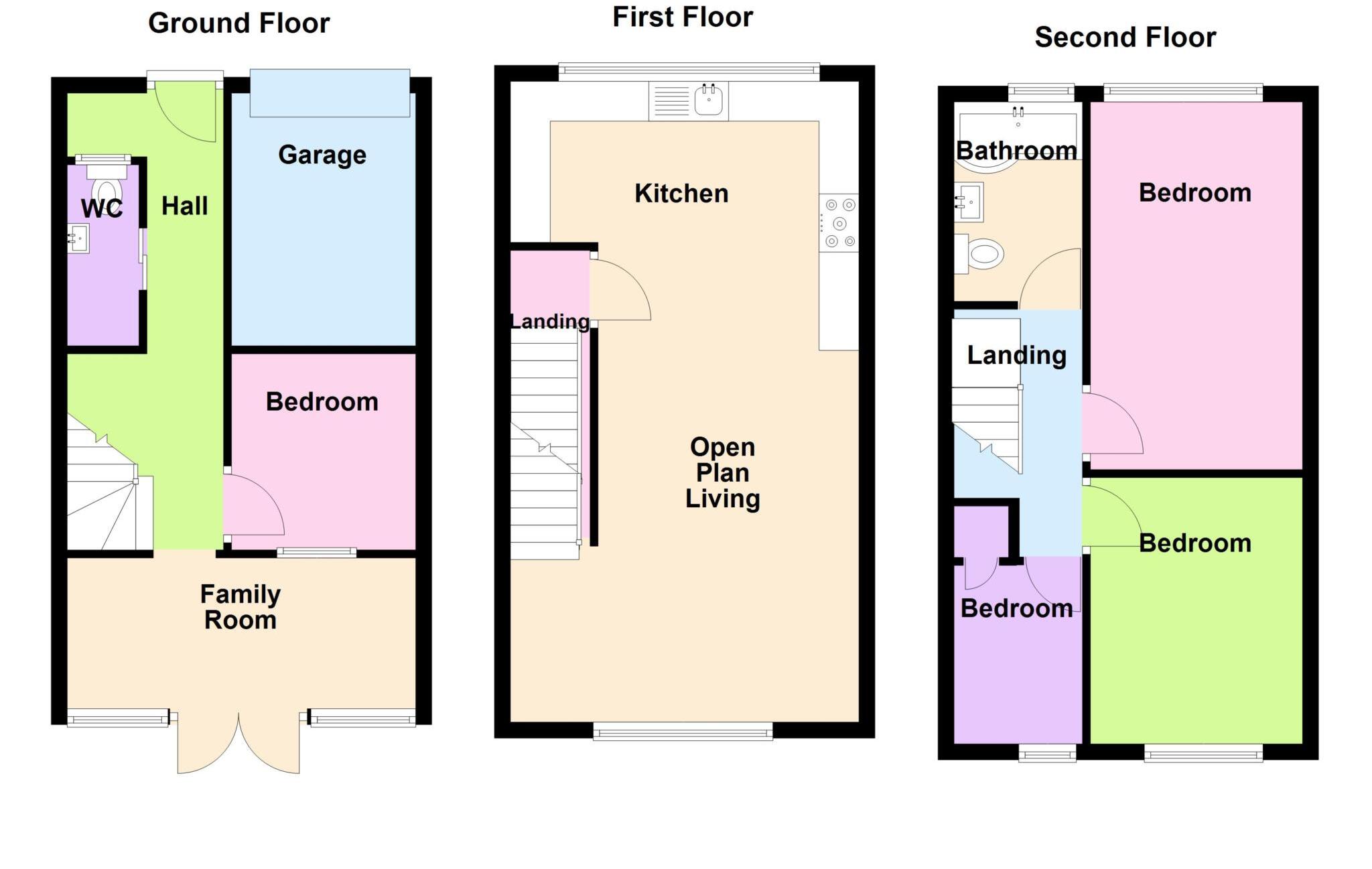 A spacious town house with versatile accommodation. The accommodation offers 3/4 bedrooms, open plan living area, ground floor snug/bed 4, GF cloakroom and 2nd floor bathroom. PVCu double glazing and gas central heating are installed. Outside the garden is of sunny aspect, 2 parking spaces to front