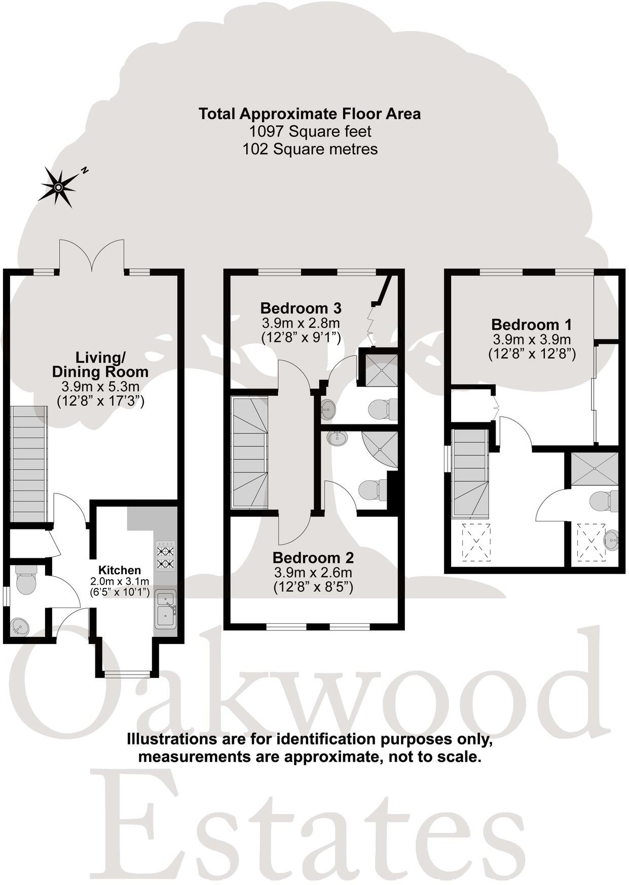 A FREEHOLD end of terrace family home. THREE double bedrooms, THREE bathrooms plus a downstairs WC. Over 1000 sq ft & in good condition throughout. Allocated parking included with the property. VIEWINGS HIGHLY ADVISED!
