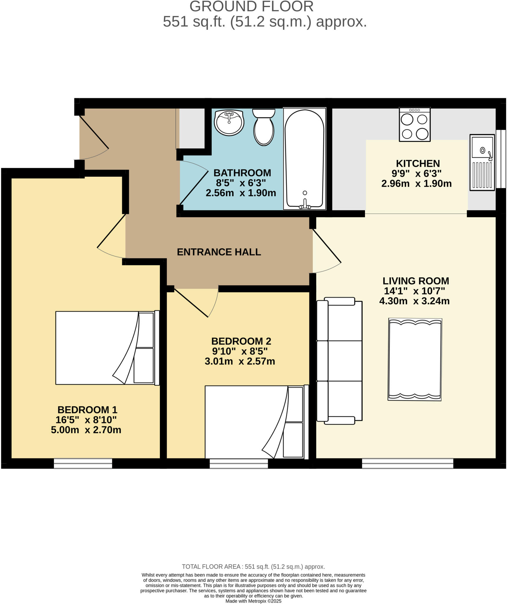This ground floor flat is located in Denton, Greater Manchester, and is listed at £140,000. The property has two bedrooms and one bathroom, and is 478 square feet in size. The average price for properties in the area is £224,641, with an average price per square foot of £263. The property is conveniently located near several schools, including Russell Scott Primary School (0.17km), Denton Community College (0.45km), and Audenshaw School (0.60km), all of which have a good Ofsted rating. Several train stations are also within a reasonable distance, including Guide Bridge (1.55km) and Denton (1.59km). The property appears to be in good condition based on the provided images. While the plot size is relatively small at 551 sqft, it does include a small garden area. Considering the location, condition, and size, the asking price of £140,000 seems reasonable, especially when compared to similar properties in the area that are listed at lower prices. However, the average price per sqft in the area is significantly higher than what this property is listed at. This suggests that the property may be undervalued.
