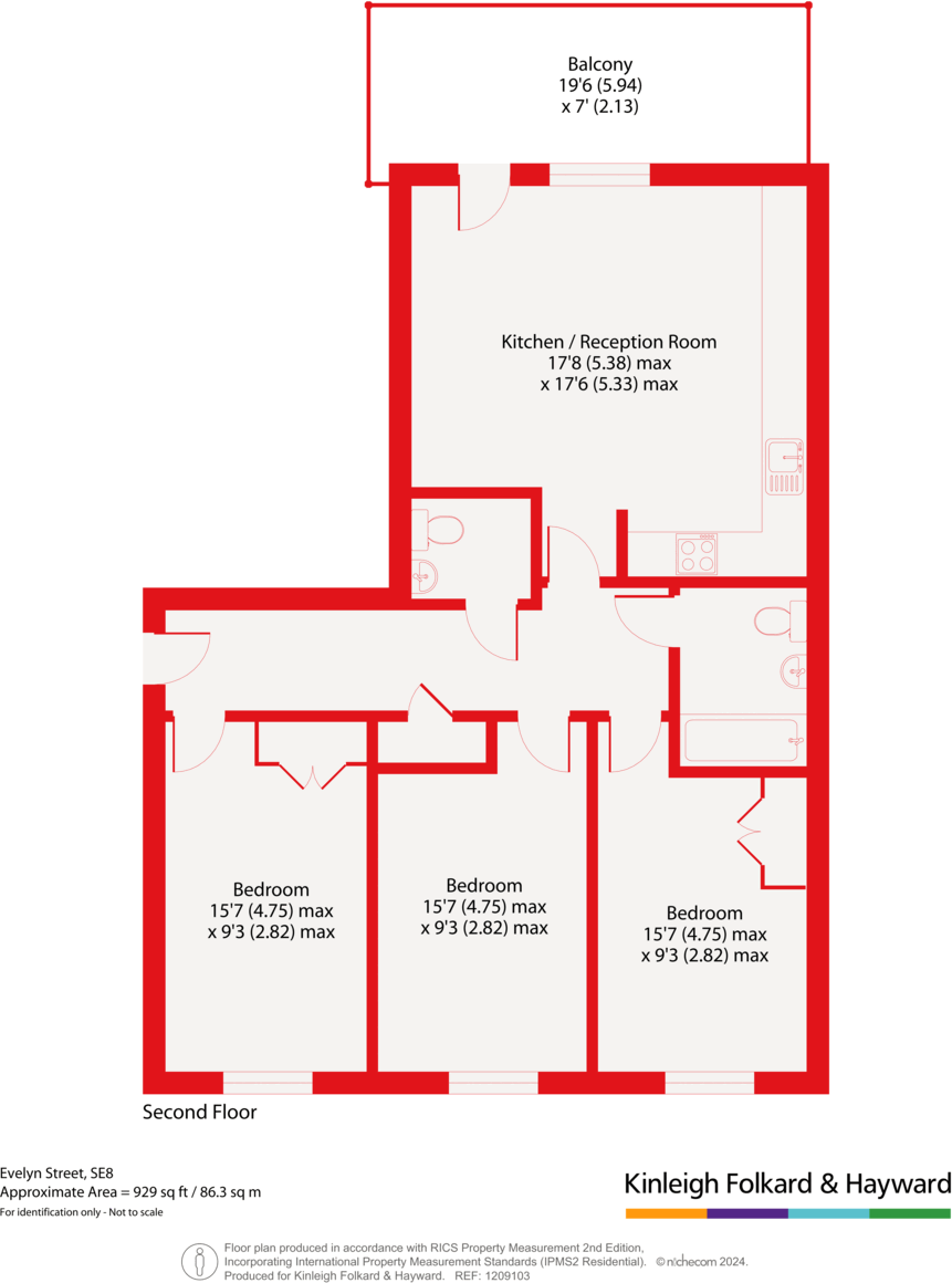 A great 3 double bedroom, 2 bathroom apartment covering nearly 1000 SqFt which offers easy access to transport links, local amenities and green spaces. A must see family home.