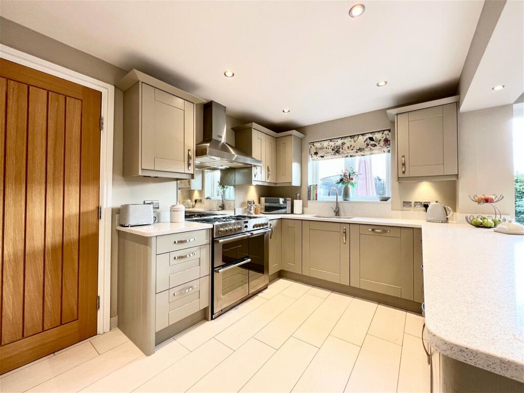 An extended and beautifully presented five bedroom detached family home occupying a choice position with south facing rear garden upon this popular cul-de-sac location in the heart of Collingham village.