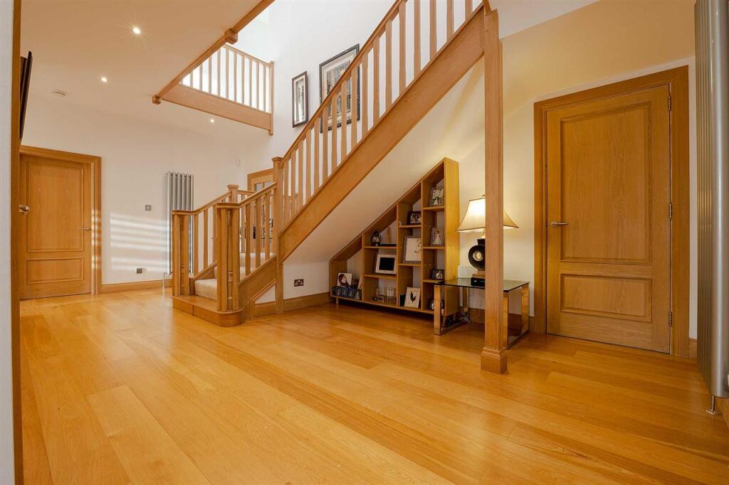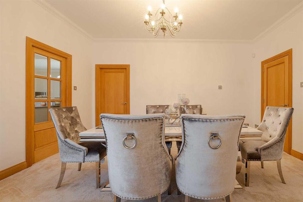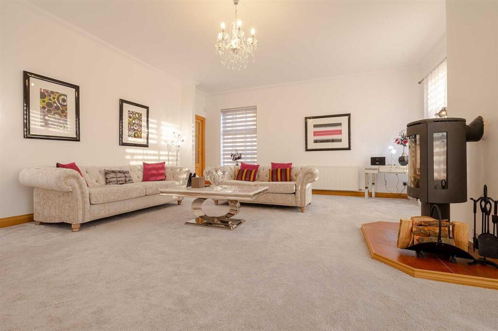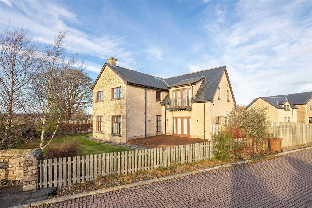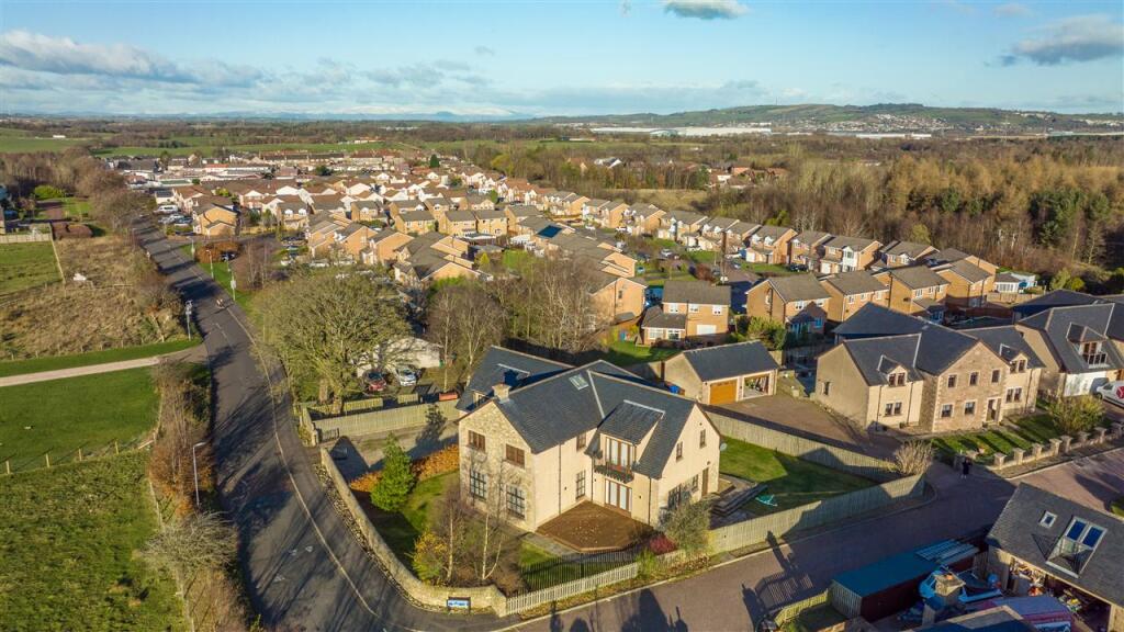 This superb executive home effortlessly combines luxurious touches with design for practical family living. Located in a small exclusive development almost exactly half way between Edinburgh and Glasgow, it is in the very heart of central Scotland. Proximity to the M8 motorway, which links t (cont.)