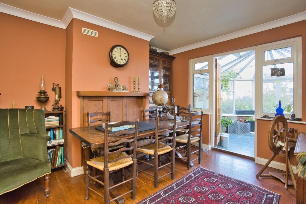 The property is a 3-bedroom semi-detached house located on Brady Road in Folkestone, Kent. It is listed at £400,000 and has 965.31 sqft of living space. The property appears to be a traditional style house, showing some signs of age but generally well-maintained. The interior features period details such as wooden flooring and fireplaces, combined with more modern elements like a fitted kitchen. The property benefits from a conservatory which extends the living space and provides additional light. The garden is visible in the provided images and appears to be of average size for a property of this type in the area, with a shed and some mature planting. The location is in a residential area, with good access to local amenities. The proximity to several primary schools with good Ofsted ratings is a positive aspect for families. Train stations are within a reasonable distance, although specific travel times would need to be verified. Considering the average price per sqft in the area is £405, and this property is listed at £400,000, the price appears to be slightly below average for the area, considering the size of the property. However, the lack of information on the plot size and the overall condition of the property compared to similar properties in the area makes it difficult to definitively assess the value. Further investigation into the condition of the property and comparison to similar recently sold properties in the immediate vicinity would be needed to confirm this.