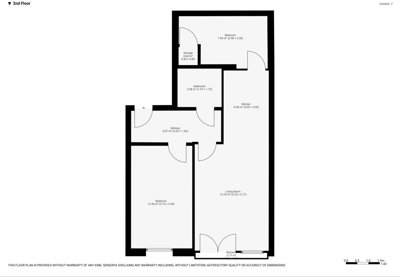 Land: The property is an apartment with no associated land or garden.
