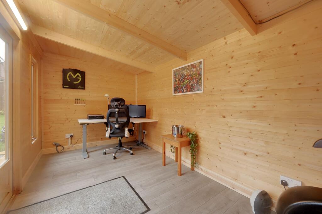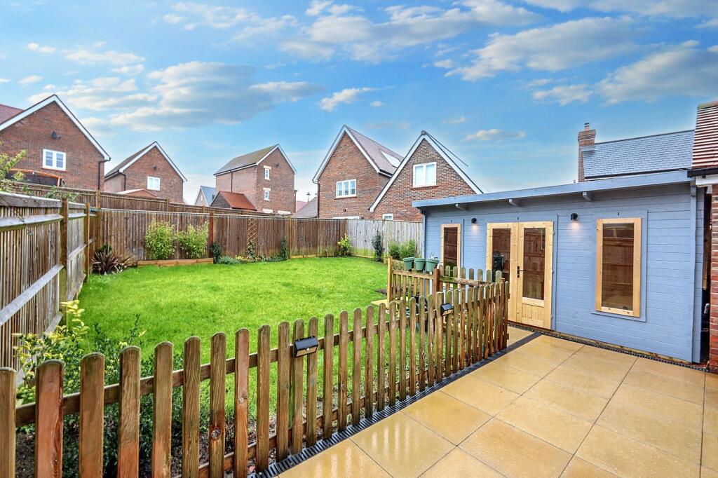 An attractive and spacious 4 double bedroom semi detached house built by Croudace Homes in 2021 benefitting from a newly built timber cabin/office, a private driveway and garage to the side.