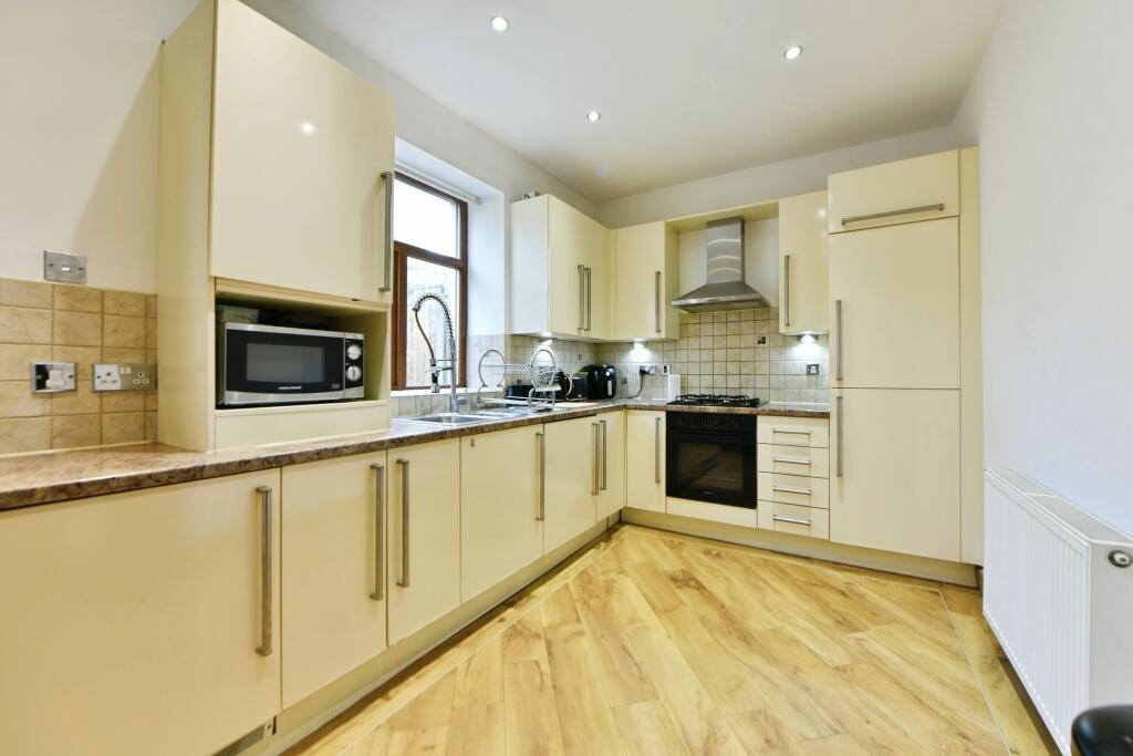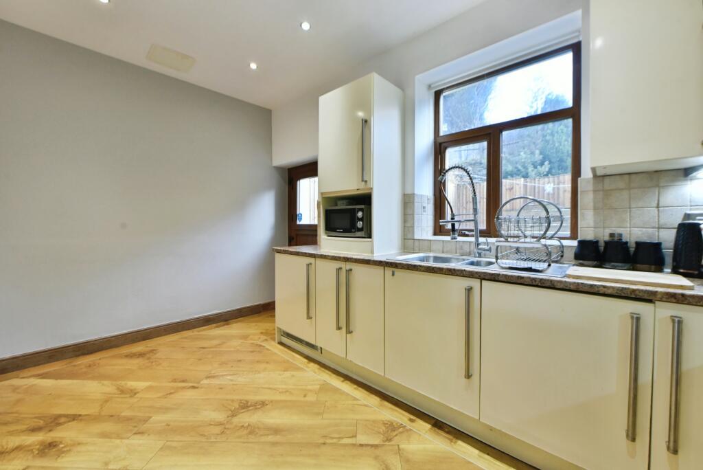 This is a two-bedroom terraced property located on Ripponden Road in Oldham. The property appears to be in good condition, featuring a modern kitchen and bathroom. It benefits from a rear garden with a patio area. The location offers proximity to local schools and transportation links. The asking price of £160,000 seems reasonable in the context of the local market, although potentially a little above the immediate street average. Overall, this property presents a solid opportunity for potential buyers.