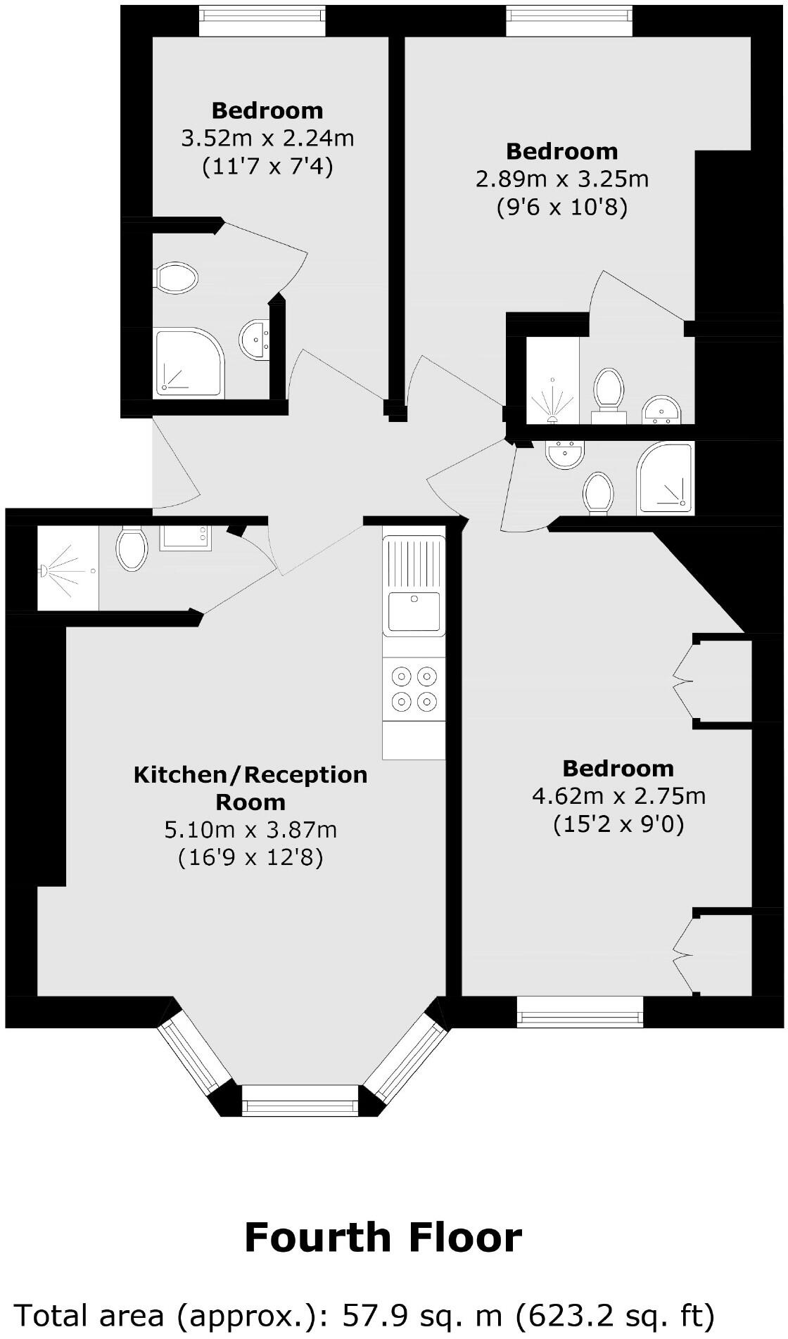 Three bedroom apartment offers plenty of storage with three en suite bathrooms. The property comes fully furnished and has wooden floors throughout.
