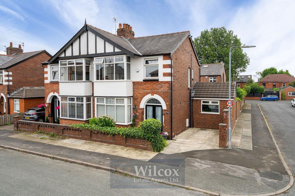 Stylish 3-bed semi with modern kitchen, 2 receptions, orangery, loft room and driveway. Low-maintenance garden, shed, lawned area, security lighting. Close to amenities and park.