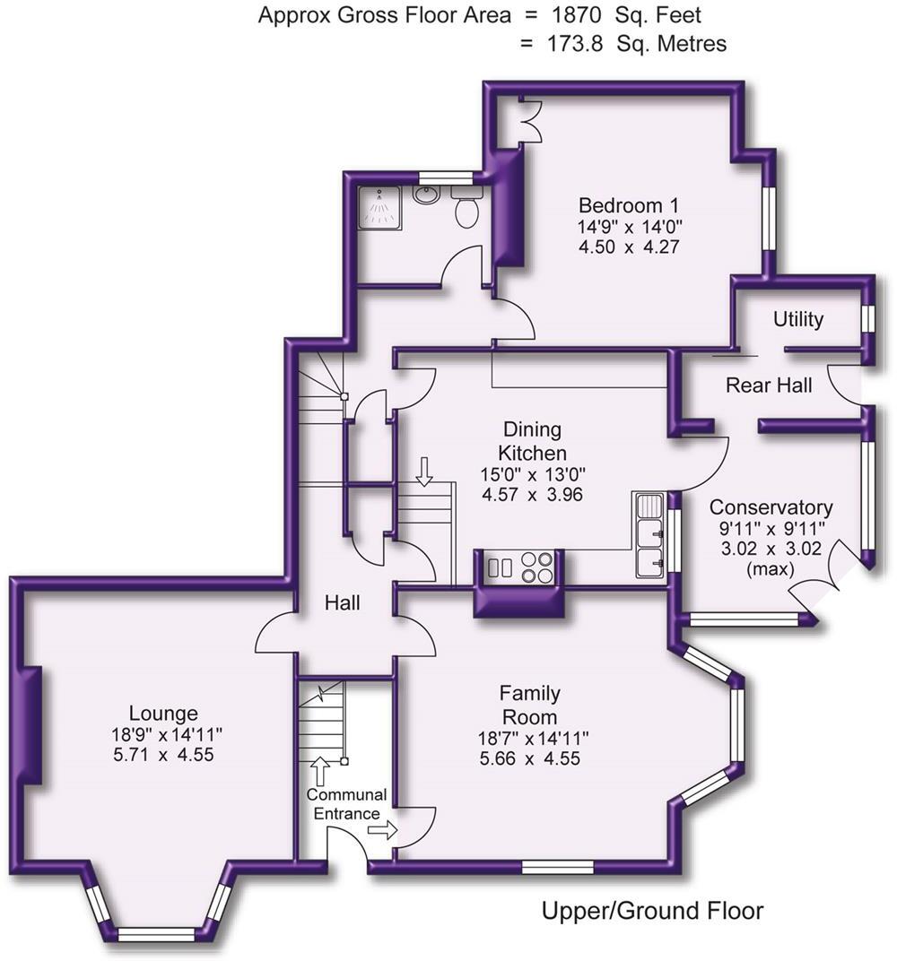 A SUPERBLY PROPORTIONED AND BEAUTIFULLY PRESENTED DUPLEX APARTMENT SET WITHIN A CHARMING VICTORIAN CONVERSION OF JUST TWO APARTMENTS, IDEALLY LOCATED ON A QUIET CUL-DE-SAC CLOSE LOCAL SHOPS, SCHOOLS AND THE TOWN CENTRE. 1870SQFT Private Entrance. Hall and Inner Hall. Family Room. Lounge....