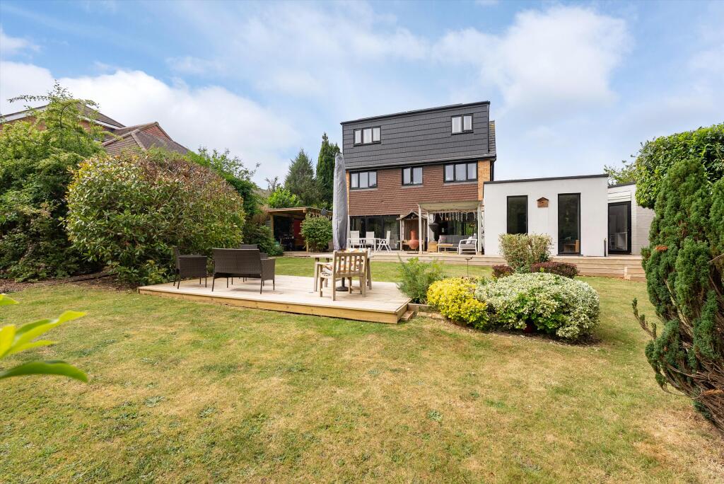 An impressive detached five bedroom house with a large garden for sale in Fetcham. Located in a quiet cul-de-sac, this desirable detached property offers superb accommodation over three floors. The property is approached via a spacious driveway with room for at least three cars, the property a...