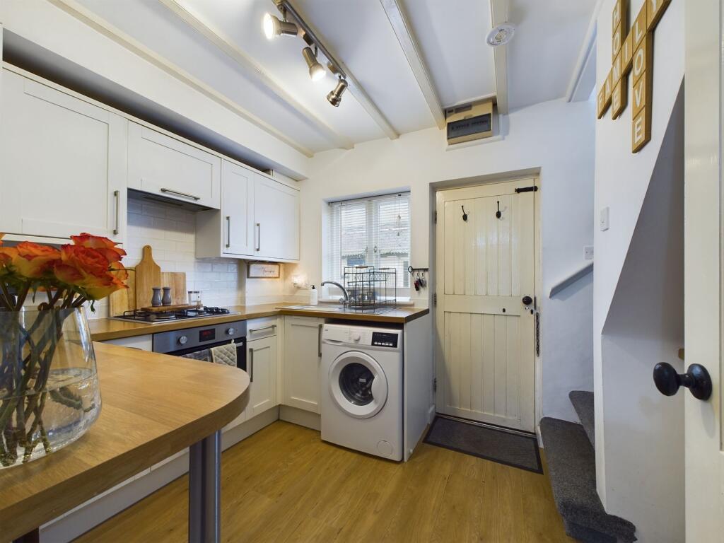 Offered with no chain is this charming, renovated two bed end terraced house with rear yard and outbuilding.The original front door opens into the bright and airy lounge with original timbers to the ceiling and oak effect laminate flooring.