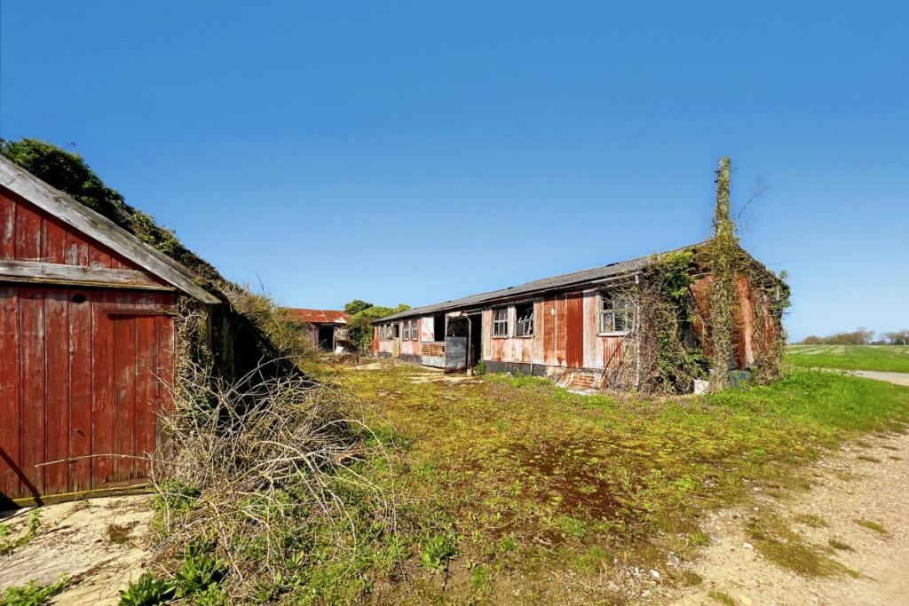 Wood Farm Barns in Worlingworth, Suffolk, presents a unique opportunity for buyers. This property comprises a collection of derelict barns situated on a large plot of land exceeding one acre. The barns are in a state of significant disrepair, with structural damage evident and considerable overgrowth present. The property is listed for auction, making it a potentially risky but high-reward purchase.