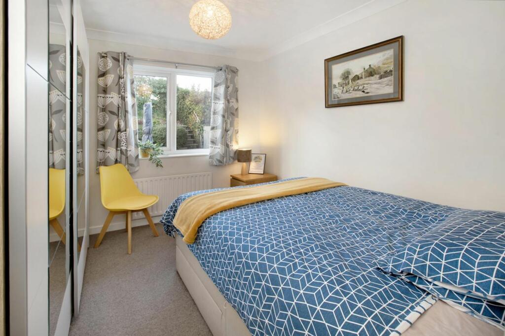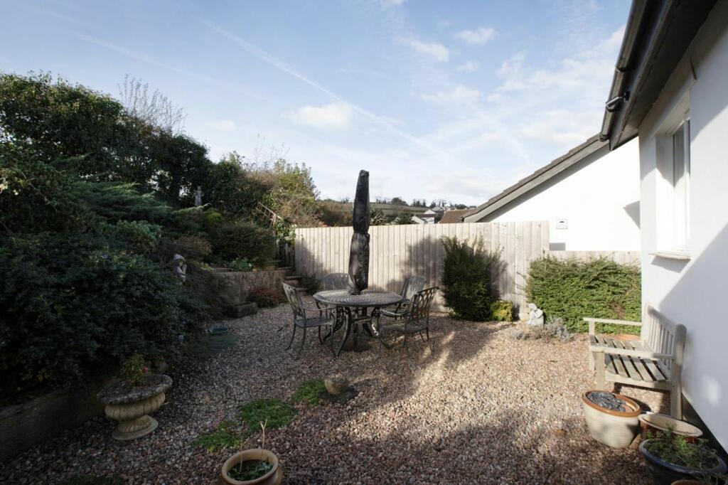 A detached two double bedroom elevated bungalow in a particularly good position at the end of a quiet cul de sac with an open front aspect for views and a secluded rear south westerly garden with fields behind. Driveway and integral garage.