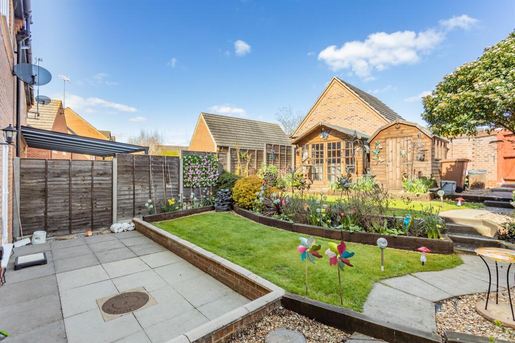 This property is a 4-bedroom, 2-bathroom detached house located in Hampton Vale, Peterborough. The location benefits from being close to Hampton College (0.44km), Hampton Vale Primary Academy (0.75km), and Hampton Hargate Primary School (0.96km), making it attractive to families. Peterborough train station is also within reasonable distance (5.18km). The property itself appears to be in good condition, with a well-maintained garden and a shed. The images show a modern interior and exterior. While specific square footage is not provided, the list price of £350,000 seems slightly higher than the average price of £300,271 for the area, but comparable to other nearby detached properties. More information on the property size would be needed to fully assess the price per square foot.