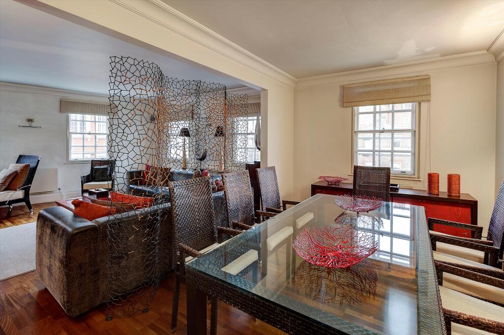 Elegant four-bedroom lateral apartment with porter, lift and secure parking in the heart of Belgravia, close to Sloane Square Situated on the third floor, this spacious lateral apartment offers four bedrooms, three of which feature en-suite bathrooms. A generous double reception room provides ex...