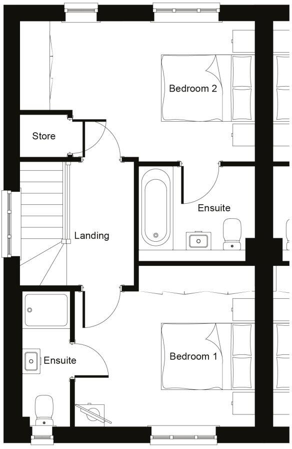 The New Salesbury is a two bedroom semi-detached home with large open plan lounge, dining and kitchen area with access to the garden through French doors, useful store cupboard and downstairs WC. Two bedrooms, each with their own ensuite, with ample storage throughout and parking. 5% DEP...