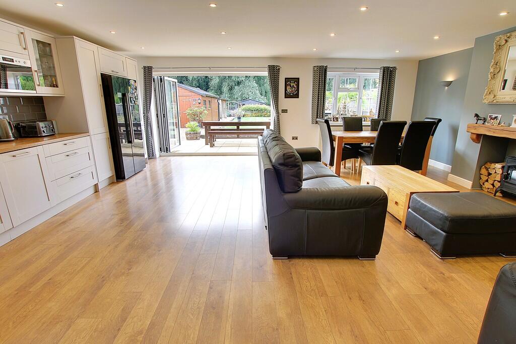 Situated on a plot approx. 0.23 of an acre (STS) this extended bungalow is offered in great condition. Features include a generous lounge/dining/kitchen with integral appliances and bi-fold doors, five bedrooms with ensuite and fitted wardrobes to the master, beautifully refitted four piece bath...