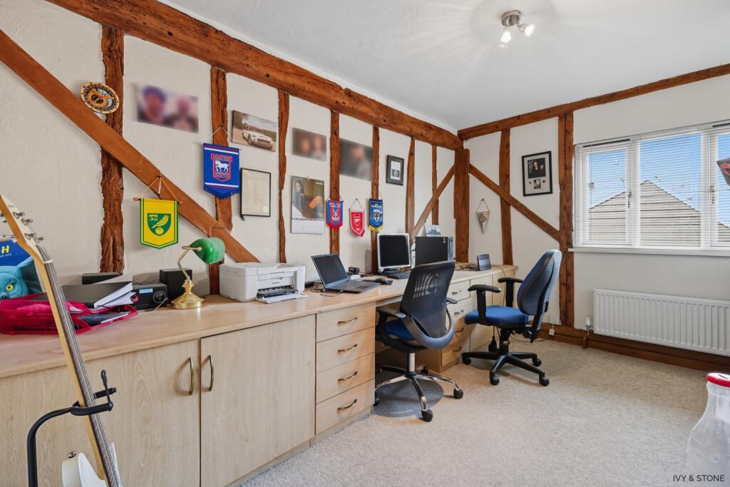 Discover this magnificent four-bedroom detached house, boasting a one-bedroom annex, substantial plot of approximately three acres, and a desirable village location in Great Bardfield