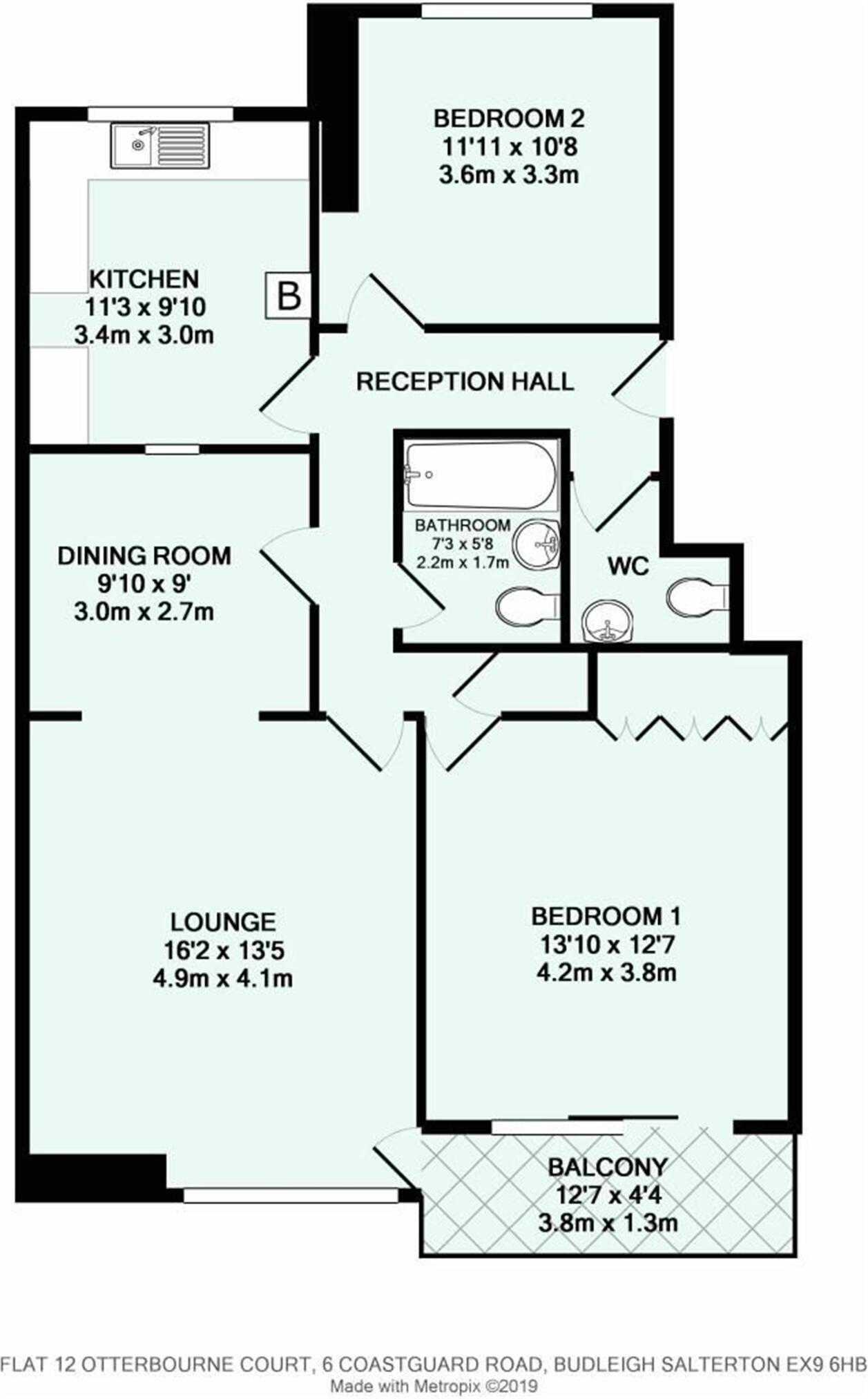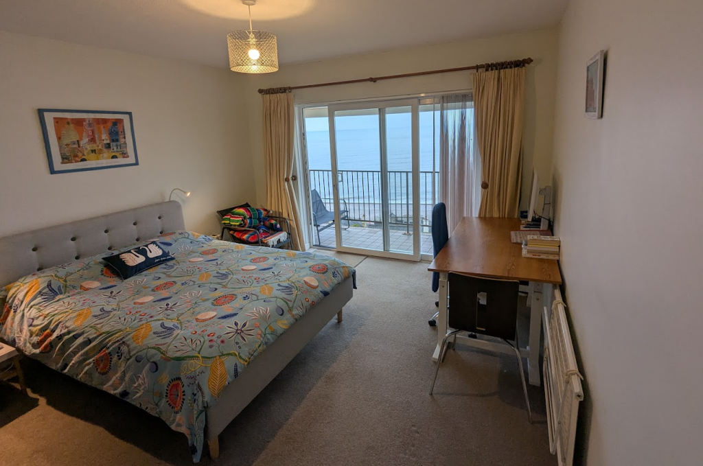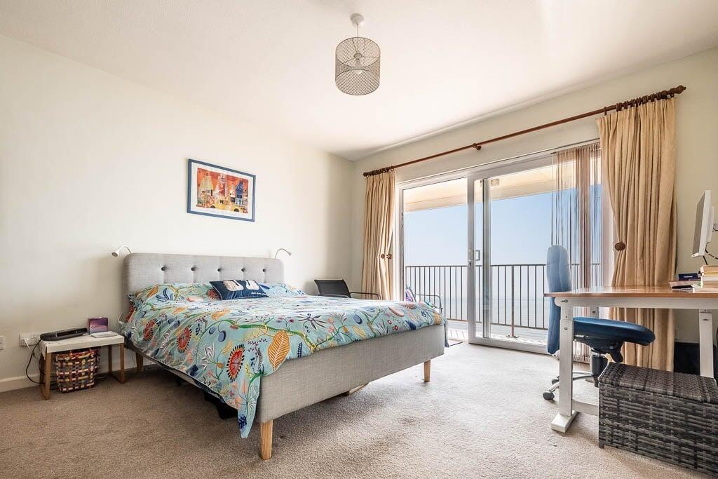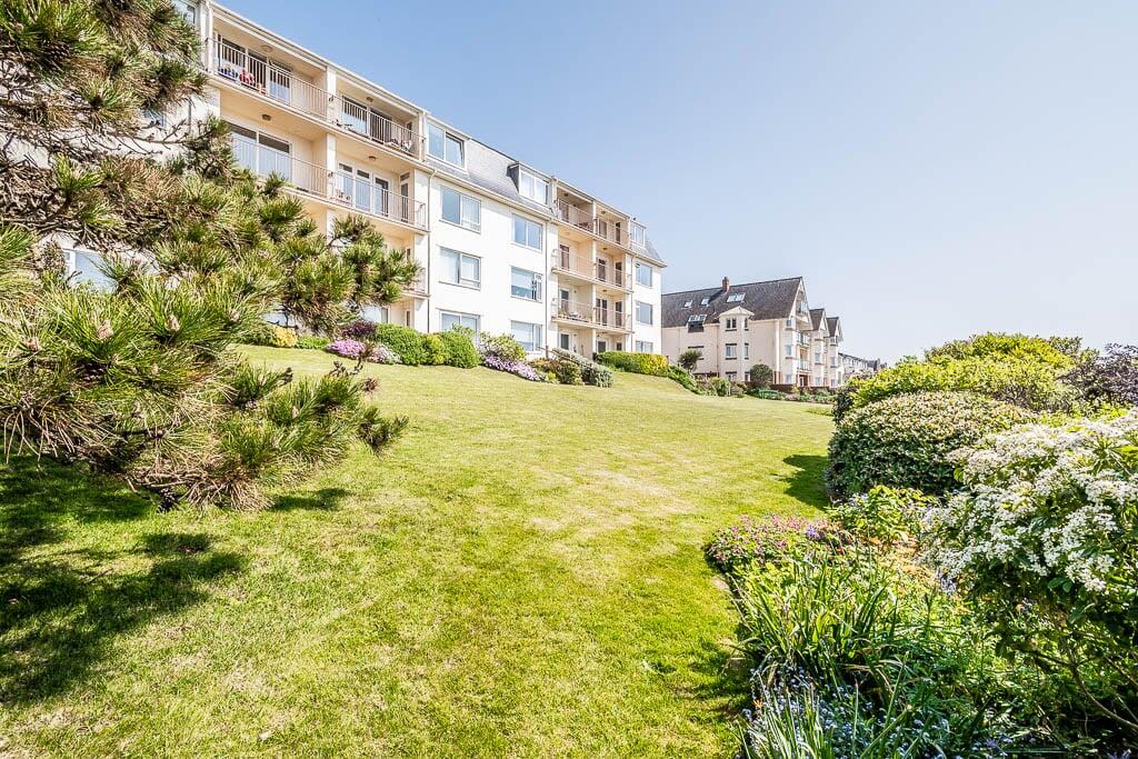 This is a two-bedroom apartment on Coastguard Road in Budleigh Salterton, Devon. The property is listed for £475,000 by David Rhys. The apartment offers 806.32 sqft of living space and includes one bathroom. The location is desirable, being close to the coast and local amenities. The apartment appears to be in generally good condition, with a modern kitchen and bathroom. The property benefits from communal garden space. The price per square foot is above the local average, but this is likely due to the sea view.