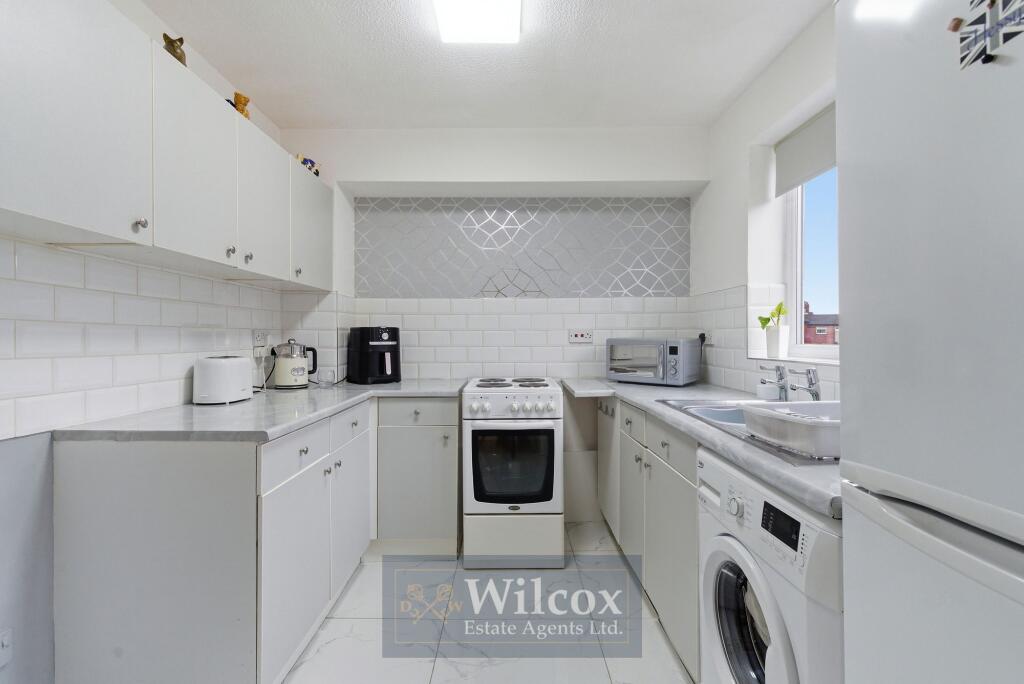 This is a two-bedroom apartment located in Crompton, Bolton. The property is in generally good condition, with modern decor. The apartment benefits from its proximity to local schools and transportation links. The price is significantly below the average for the area, making it an attractive purchase for first-time buyers or investors. However, the lack of private outdoor space may be a drawback for some buyers. The property is located on a busy street.