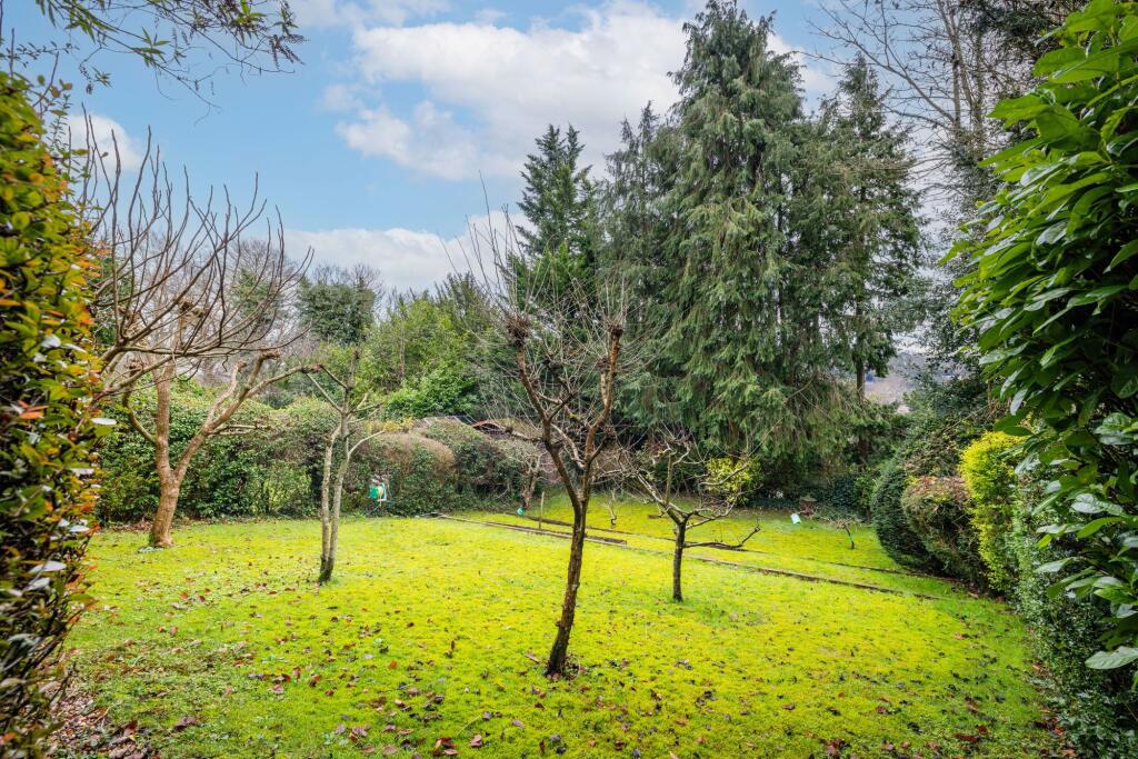 The property benefits from a substantial garden, providing ample outdoor space. The garden is tiered, offering a variety of areas for relaxation and entertaining. The size and landscaping of the garden add significant value to the property.