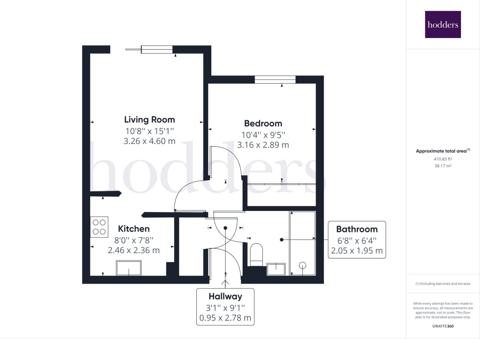 This is a one-bedroom apartment located in Addlestone, Surrey. The property is listed for £170,000 and has a square footage of 410.83. The apartment benefits from communal garden space. While the property is in reasonable condition, it would benefit from some modernisation. The location is convenient, with access to transportation and schools. The price per square foot is below the Addlestone average, making it a potentially attractive purchase.