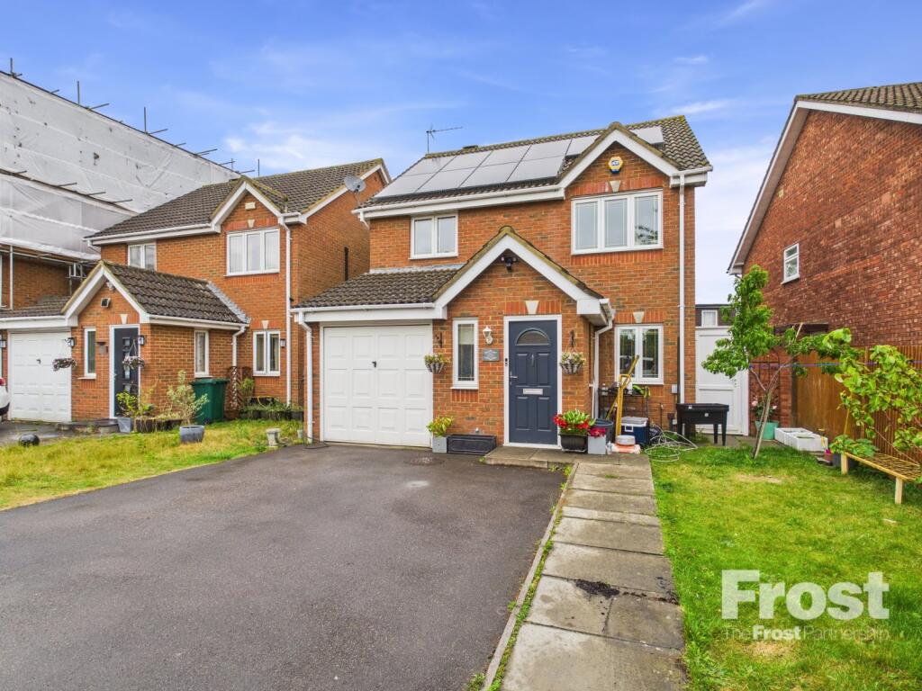 A well-presented detached family home situated within a private cul-de-sac location. The property has been extended to the rear, benefits include solar panels, garage, off-street parking and a landscaped rear garden.