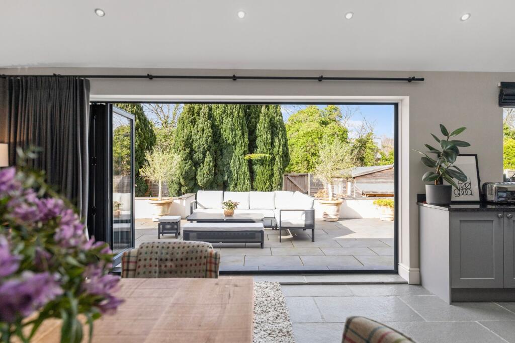 This property is a 4-bedroom, 3-bathroom detached house located in Greenbank Gardens, Stockton Heath, Warrington. The house has been recently extended and renovated to a high standard, featuring a modern kitchen and open plan living area. There is a substantial garden with a patio area, ideal for entertaining. The location is desirable, close to good schools and transport links. The asking price of £850,000 is above the average for the area, but given the size, condition, and location of the property, it could be considered reasonable. The property appears to be in excellent condition and benefits from a large plot size.