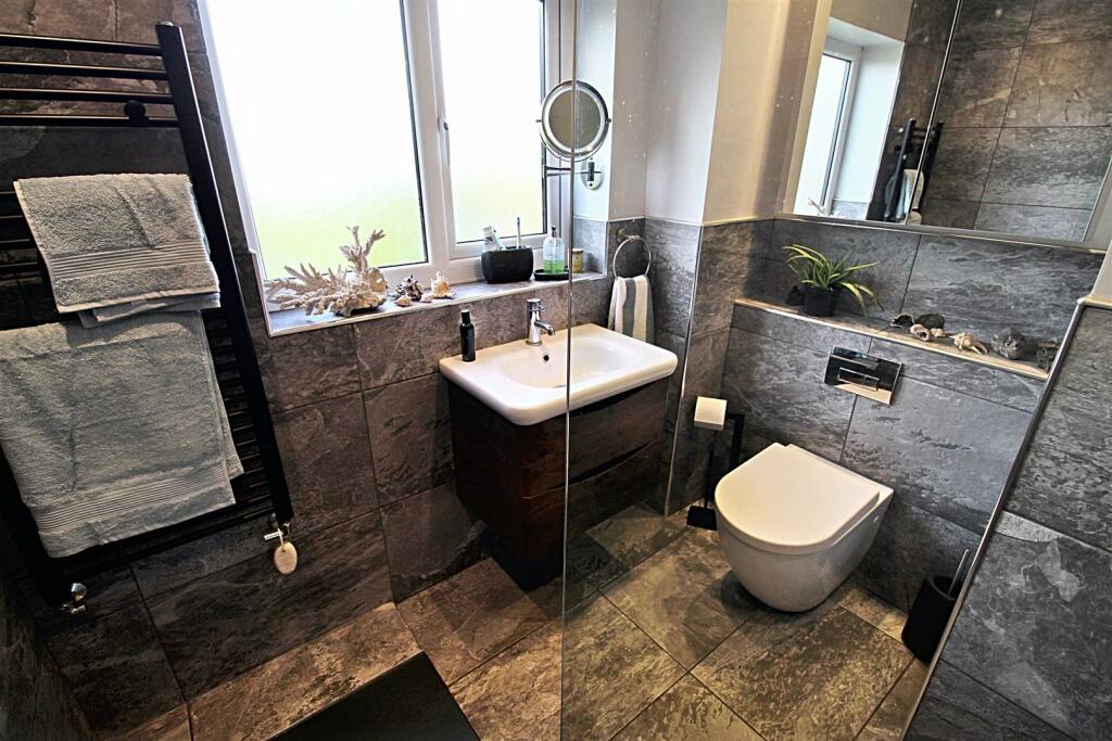 This four/five-bedroom detached house in Almondbury, Huddersfield, is presented as a well-maintained family home. The property boasts a modern, updated interior, showcasing a recently refurbished kitchen and bathrooms. The kitchen is particularly impressive, featuring ample counter space, an island, and high-quality appliances. The bathrooms are similarly stylish and contemporary. The images depict well-proportioned living spaces, although precise square footage is missing. The property benefits from a sizable garden which, judging by the aerial view, is significantly larger than many others in the surrounding area. The house is situated on a peaceful cul-de-sac, offering a tranquil setting yet remaining conveniently located near good schools and transport links to Huddersfield. While transport links are present, the property is not immediately next to them. Nearby streets show a range of house prices indicating a varied market in the area. Overall, the property appears to be in excellent condition and well-presented. More information on the square footage and detailed property specifications would strengthen the listing. The lack of precise data regarding property size and the absence of information on features like parking or outbuildings prevents a complete and comprehensive analysis.