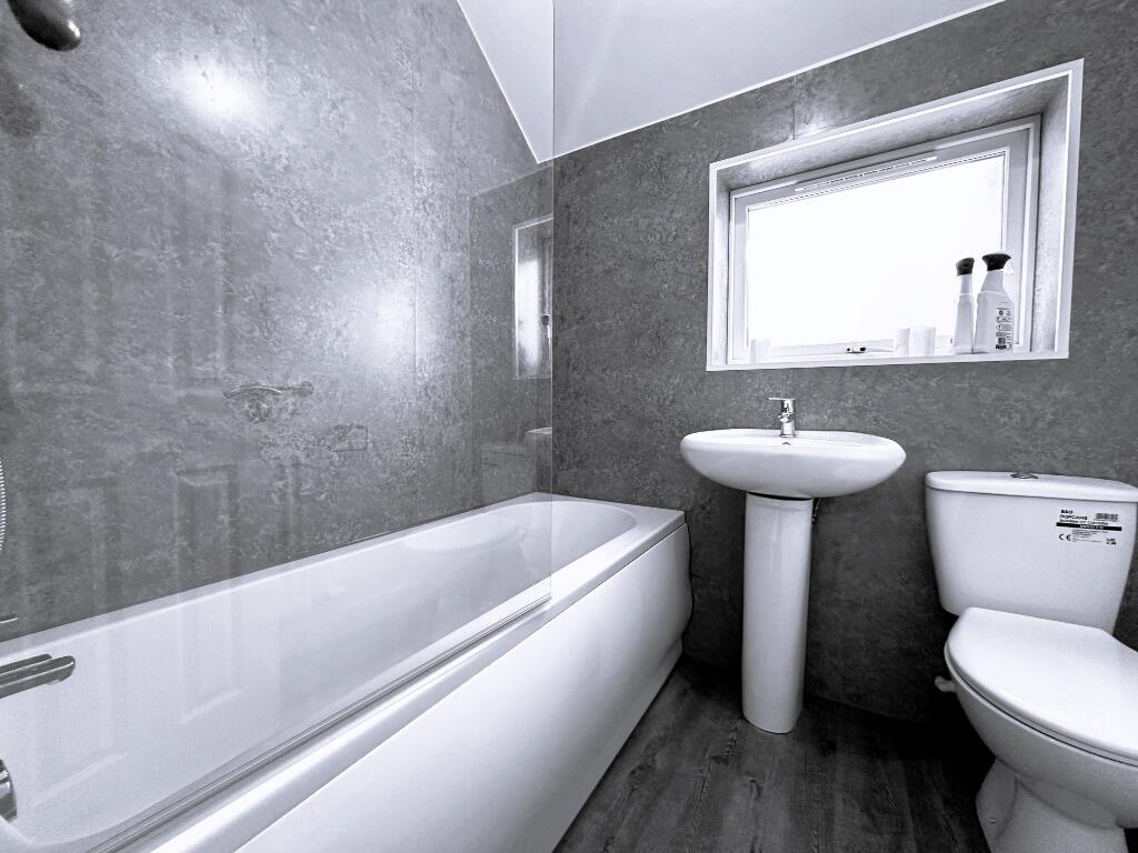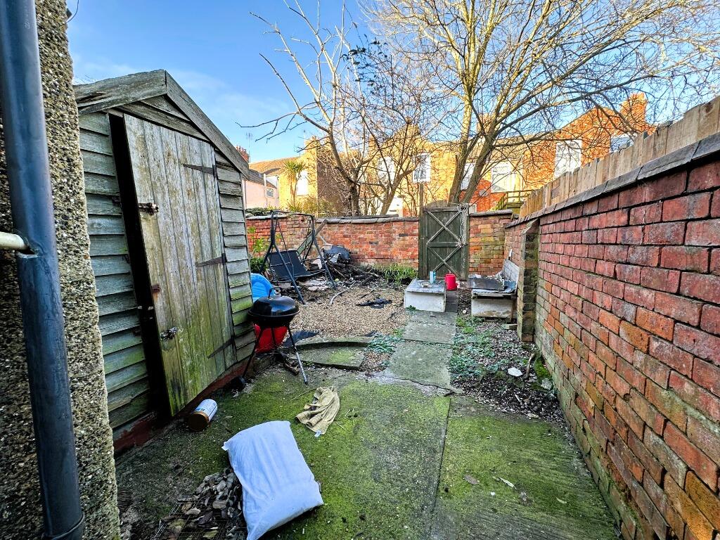 The property has a small rear garden, which currently appears overgrown and in need of landscaping. The total area of this outside space is not provided. A small shed is situated in one corner. While the property offers some outdoor space, it isn’t substantial.