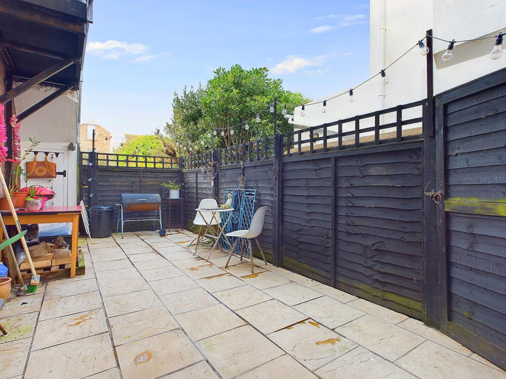 Bright and spacious ground floor apartment offered with a west aspect rear patio garden, two bedrooms, and a share in the freehold. Great location moments from the seafront and shops and cafes on Richardson Road.