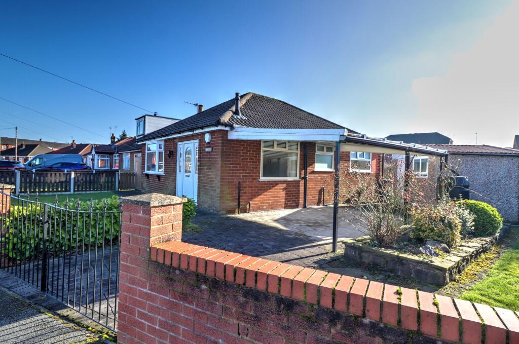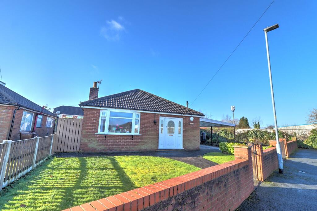 Delightful 2-bed bungalow in quiet cul-de-sac. Single-level living with open plan kitchen diner. Large corner plot with carport, driveway for 2 cars. Tranquil front and rear gardens, brick storage shed. Popular residential location, no chain. A rare gem for discerning homebuyers.
