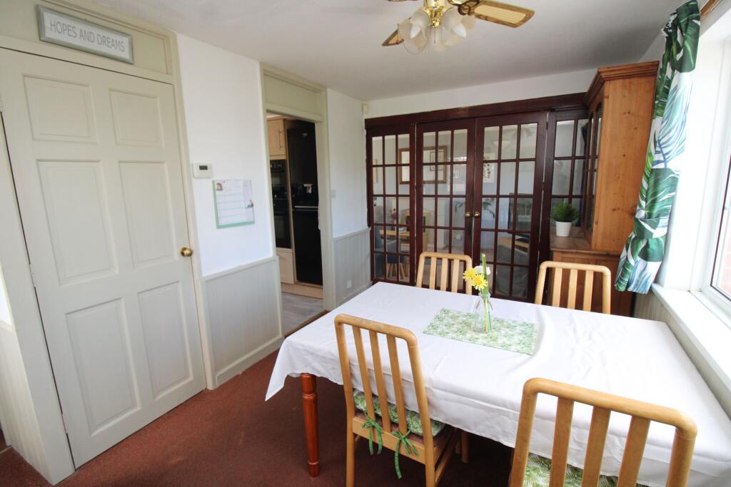 A linked detached house providing three bedrooms and a spacious accommodation layout, off-road parking, garage and extensive rear gardens, with much potential and offered for sale with no onward chain.