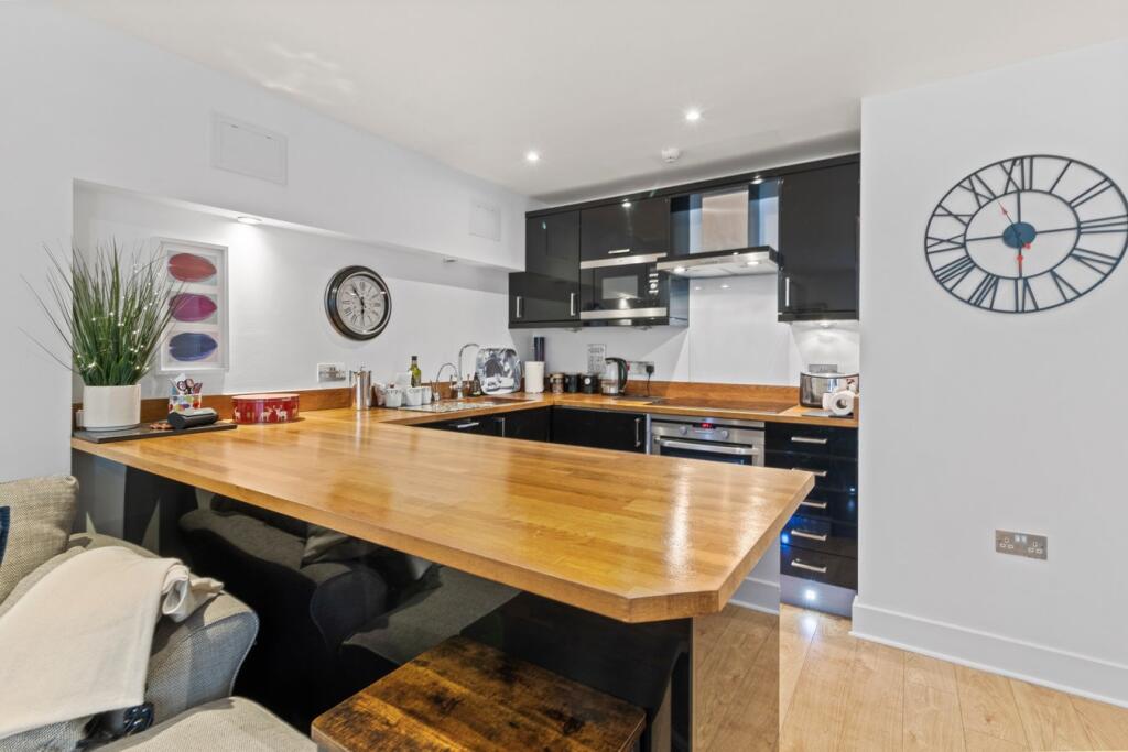The property is a two-bedroom, two-bathroom apartment with a total area of 678.13 sqft. The list price is £350,000. The apartment is located in the Meads area of Eastbourne, East Sussex. The location is favorable, with Eastbourne railway station being only 0.82km away, providing convenient access to transportation links. Several schools are also within a reasonable distance, including Bourne Primary School (rated Good by Ofsted) at 1.07km and Eastbourne College at 0.79km. This proximity to amenities and transport makes the location score relatively high. Based on the images, the apartment appears to be in excellent condition. It is modern, with a contemporary kitchen and bathrooms. The property seems well-maintained and recently updated, suggesting a high condition score. The plot size is listed as 0.00 sqft, indicating that there is no garden associated with the property. This is a factor that could lower the overall land score. Considering the list price of £350,000, the average price in the area is £365,378, and the average price per sqft is £374. The property’s price per sqft is significantly lower than the average for the area. While the lack of a garden may affect the value, the modern condition and convenient location suggest that the list price could be considered reasonable, or potentially even a good value, relative to the market. However, more detailed information on comparable properties would be needed to confirm this. The property appears modern in style and is well presented.