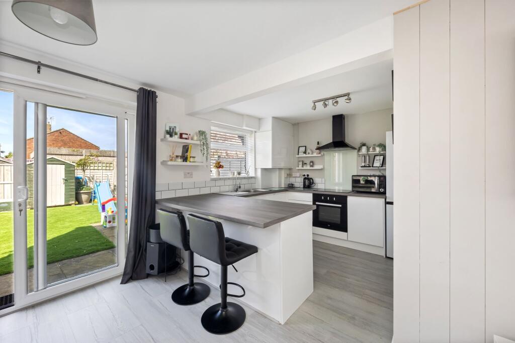The property itself appears to be in excellent condition. The images show a recently modernised interior with a contemporary kitchen and bathrooms. There is no visible evidence of wear and tear or the need for renovation. The garden is well-maintained with artificial turf, making it low maintenance.