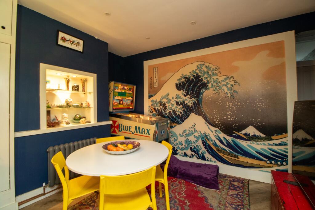 The interior boasts a recently refurbished kitchen that is presented well and appears to be fully fitted. However, the distinctive and eclectic interior design choices might need to be updated to appeal to a wider range of buyers. Some rooms, like the gaming rooms, are quite specialized in their styling. The overall condition is adequate but doesn’t reach luxurious standards, meaning some updates might still be needed and this could impact value.