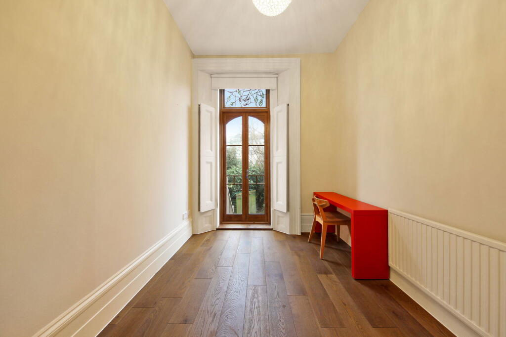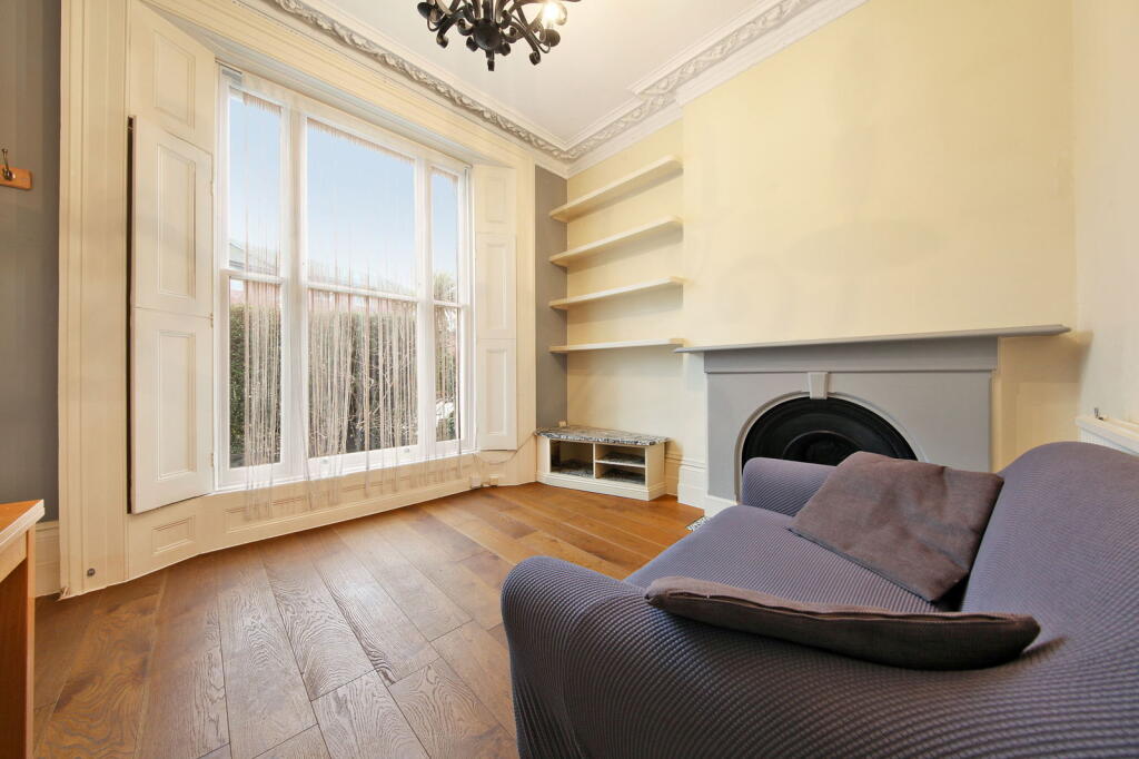 Delightful two-bedroom flat with direct communal garden access, set on the raised ground floor of an attractive three-story period property. This home features high ceilings, wooden floors, and original wooden window shutters. The entrance hall leads to a bright reception room with a door to t...