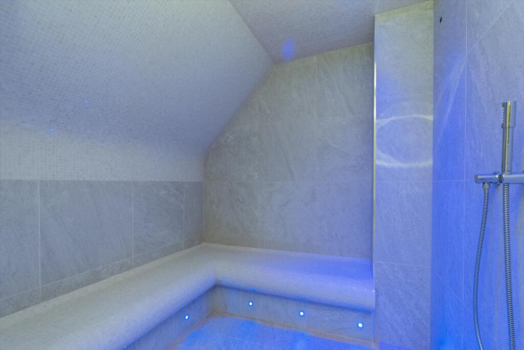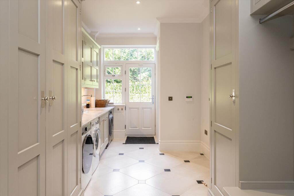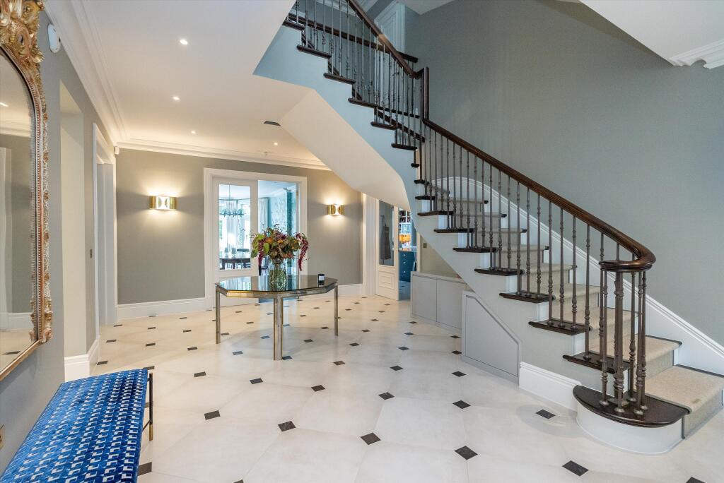 Detached six bedroom home located in private road in Cobham, KT11 This fabulous detached family home was built by the Halebourne Group and finished in 2018. Extending to around 7,300 sq ft and located on one of the most desirable and quietest private roads in Cobham with tall ceilings, an abunda...