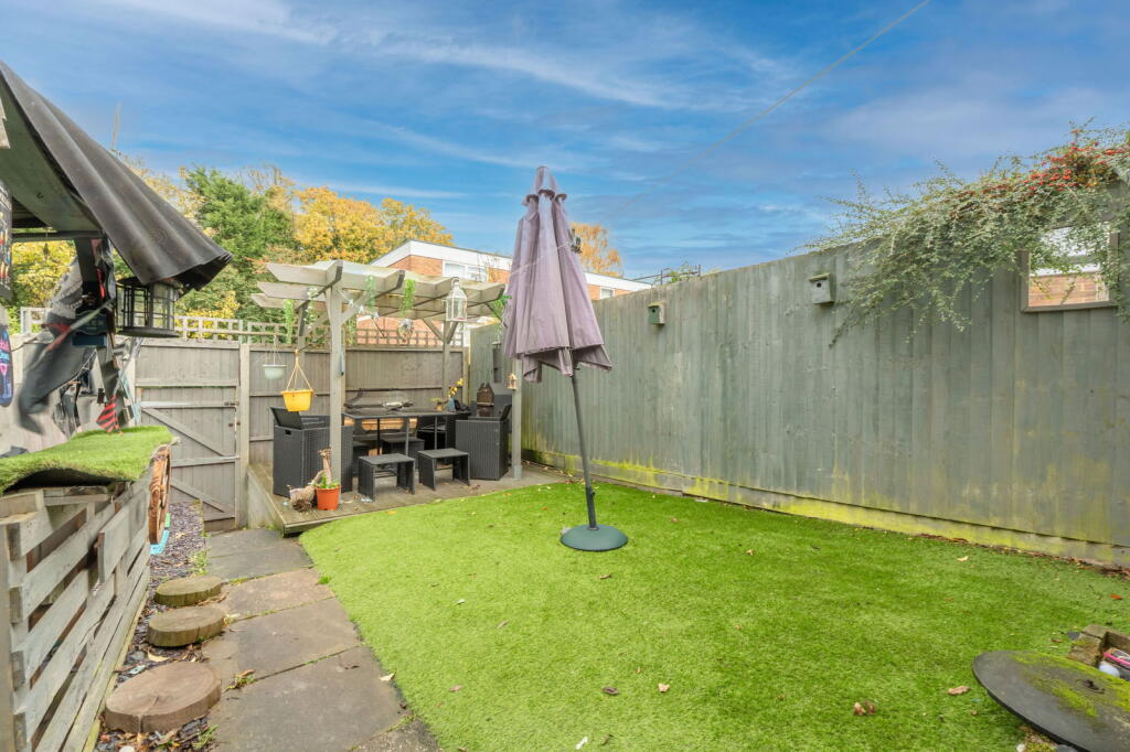 This is a three-bedroom terraced house in Redditch. The property features a modern kitchen and bathroom, front and back gardens. While the property is in generally good condition, some areas could benefit from updating. The house is located within a reasonable distance of schools and transportation. The asking price of £220,000 appears fair in comparison to local market data.