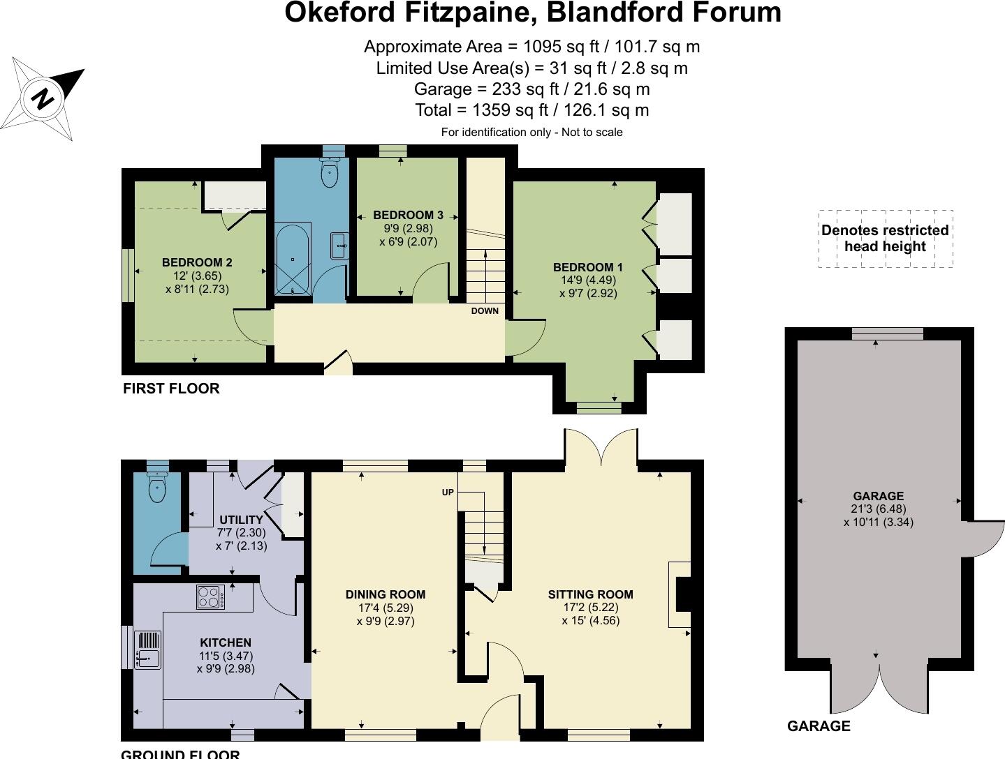 This is an end-of-terrace property located in the village of Okeford Fitzpaine, Dorset. The house has three bedrooms and one bathroom, with a total square footage of 1,359. It features a well-maintained garden with a patio, shed, and greenhouse. The interior appears to be in good condition, with a modern kitchen and bathroom. While the location is rural, it is within walking distance of the local primary school. The asking price of £390,000 is higher than the average for the area but reflects the property’s size and features. The property retains a traditional feel.