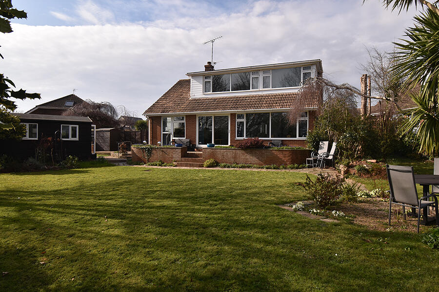 A deceptively spacious detached chalet style property offering well proportioned versatile living accommodation whilst occupying a fabulous position with large enclosed lawned rear garden. Four/five bedrooms. Dressing room to master bedroom. Reception hall. Light and spacious lounge/dining roo...