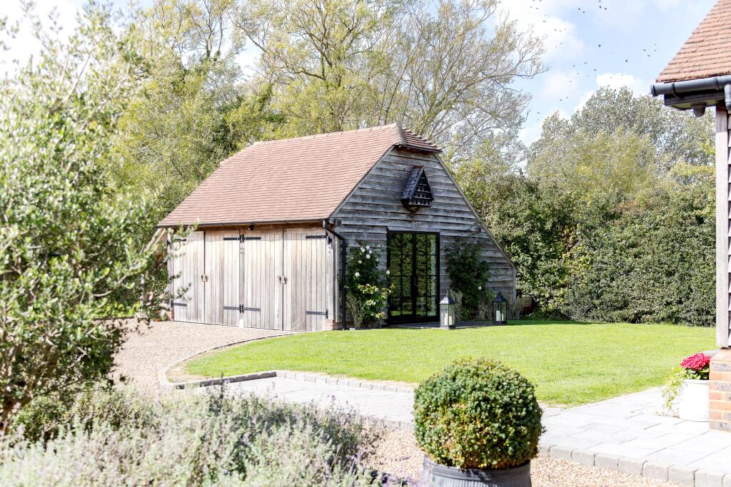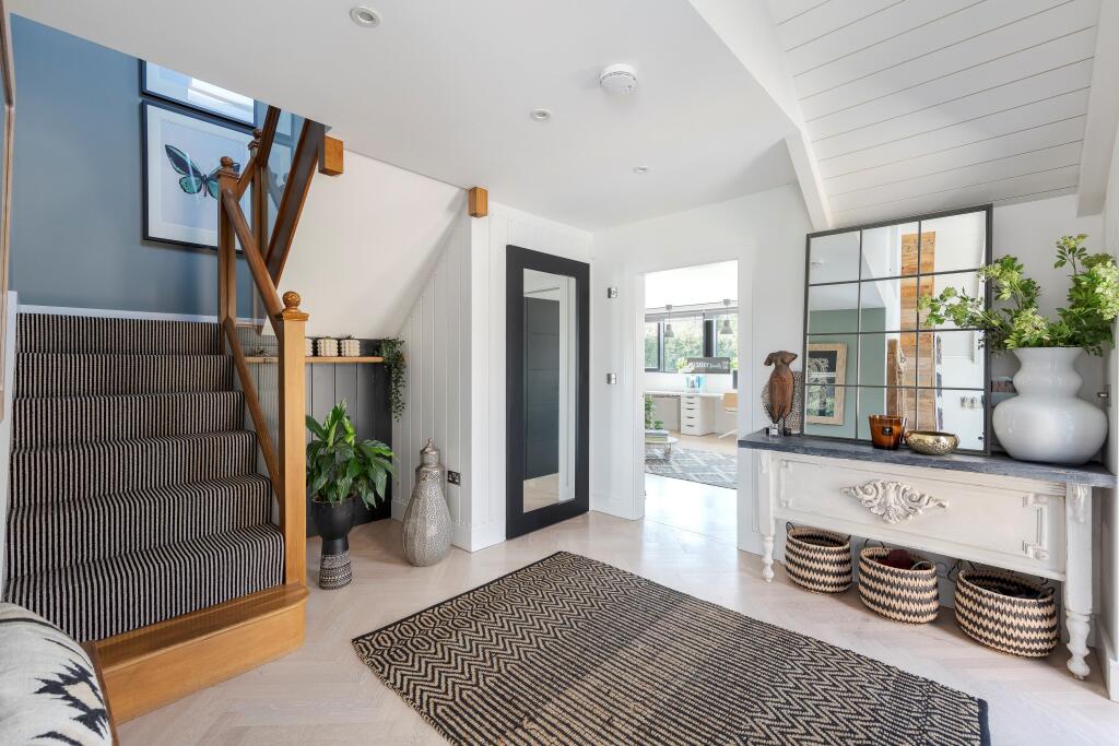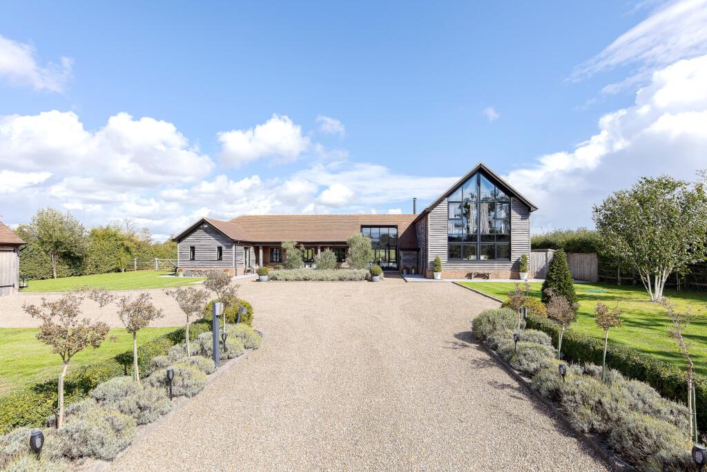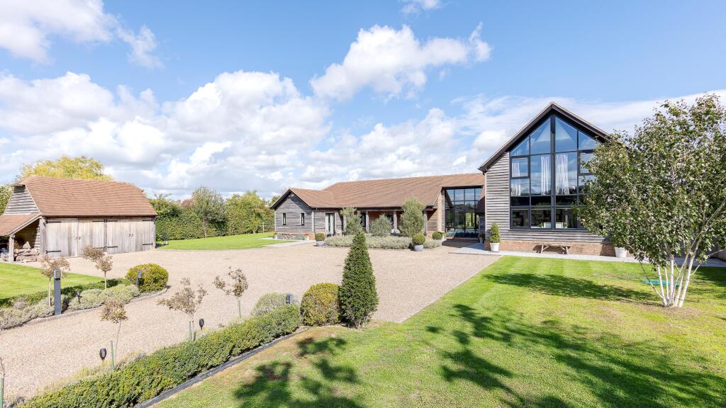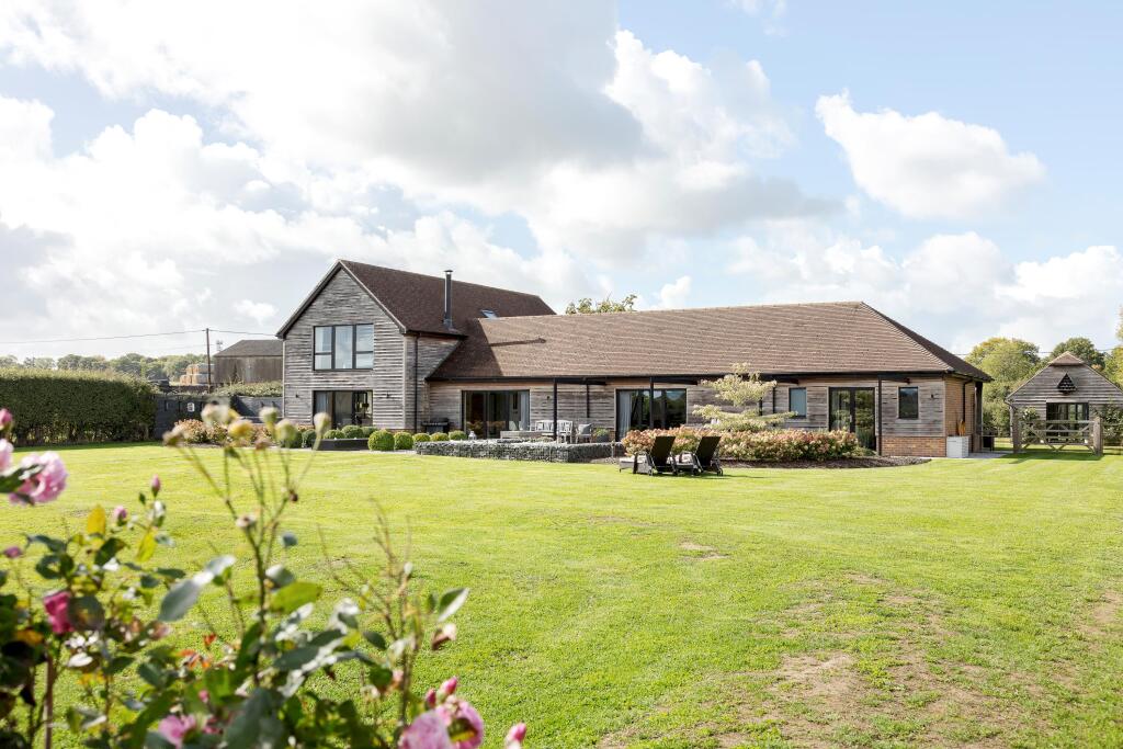Chellows Barn is a beautifully presented detached property located in the sought-after area of Crowhurst, Surrey. The house features five bedrooms, three bathrooms, and a modern, stylish interior. The property also benefits from a large garden, a gym, and ample parking. While the price is high for the area, the condition and features of the property justify the premium.